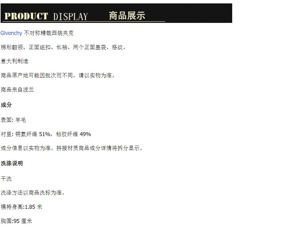 Givenchy/纪梵希男士棕色不对称精裁西装夹克 210206ff2445