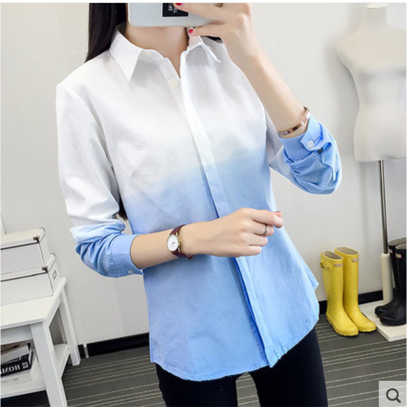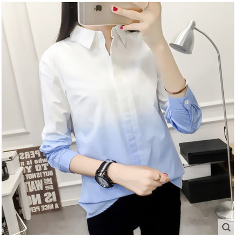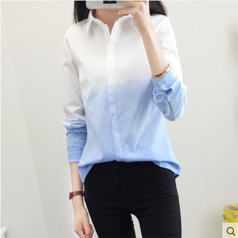 渐变色白色少女衬衫女长袖韩版宽松休闲衬衣小清新学生学院风可爱