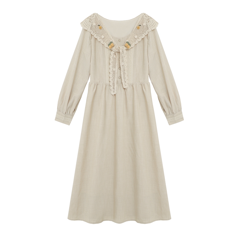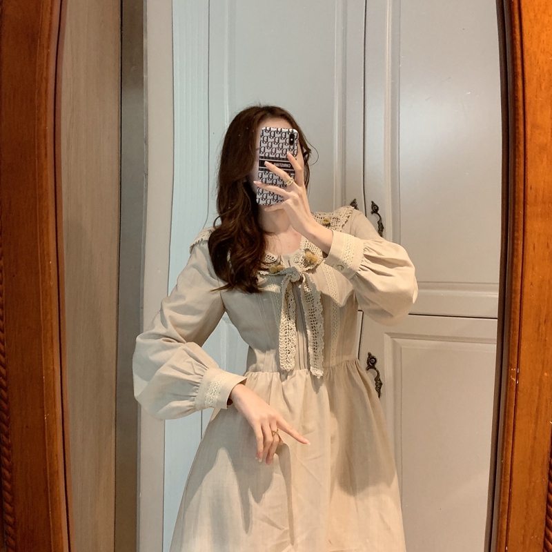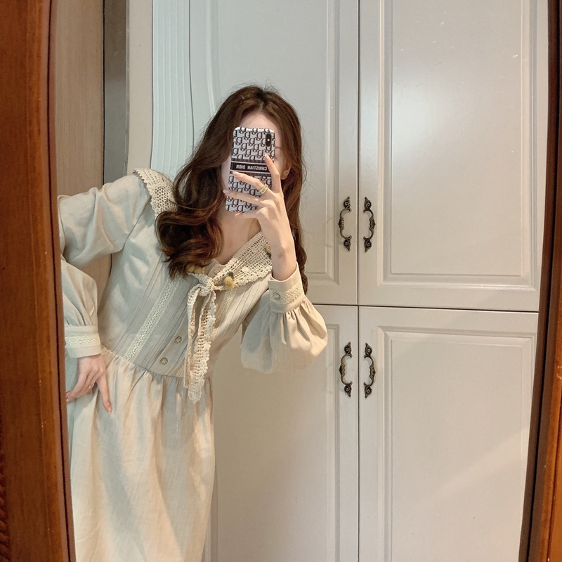 长袖连衣裙春款2021新款茶歇裙可盐可甜赫本风长裙早春裙子chic