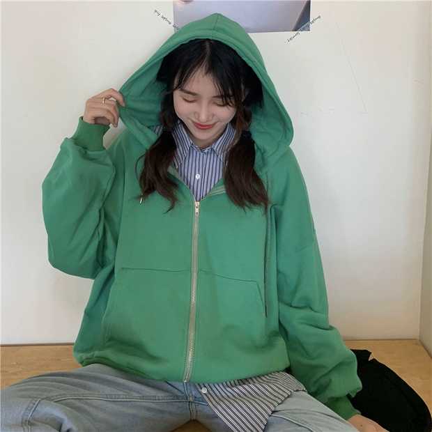 商品名称:外套女2020新款秋季宽松韩版长袖上衣百搭拉链开衫连帽卫衣ins潮