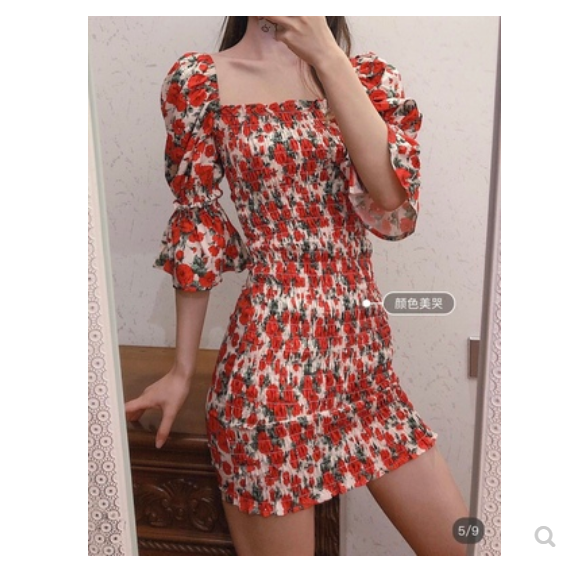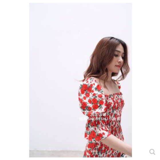 越南代购shebyshj裙子红色碎花连衣裙越南小众品牌夏季新品