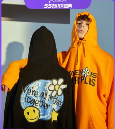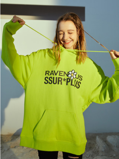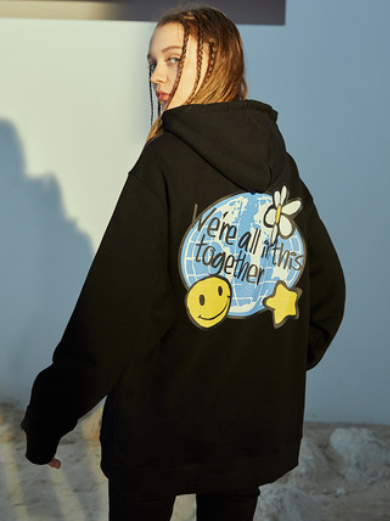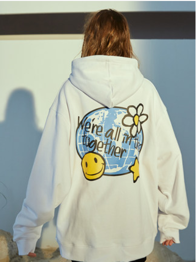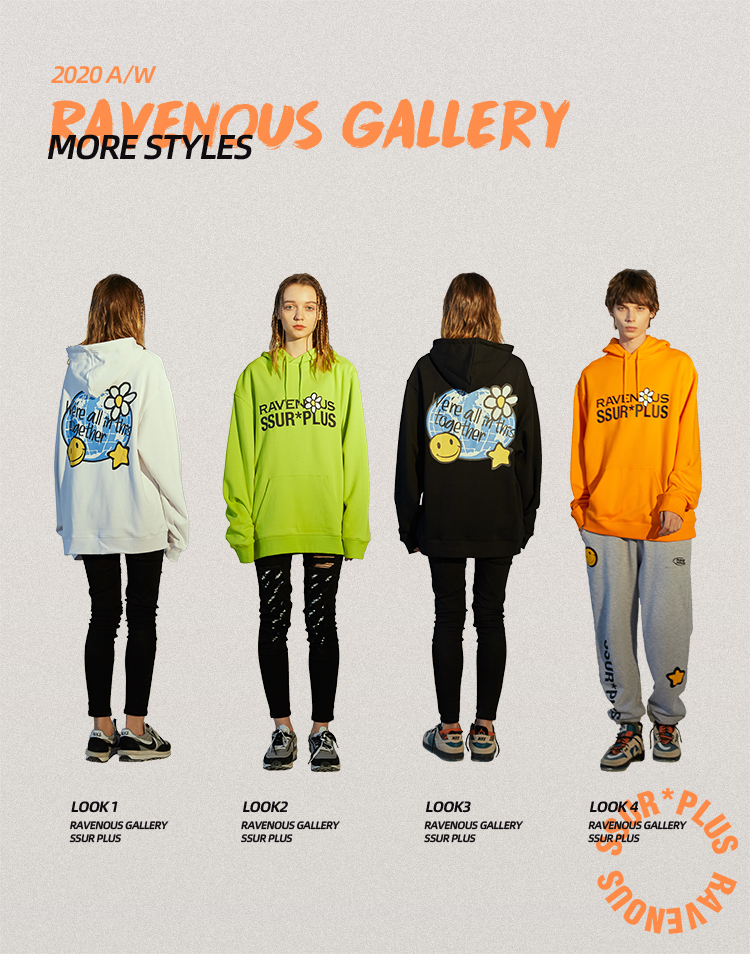 RAVENOUS联名SSUR PLUS 地球笑脸印花帽衫情侣宽松连帽卫衣男潮牌