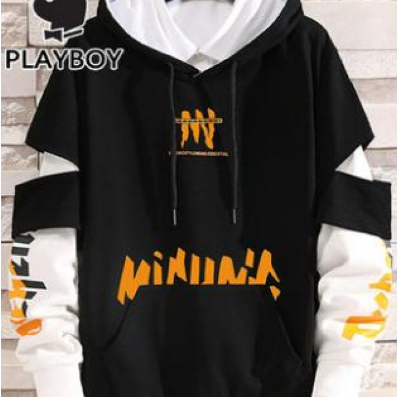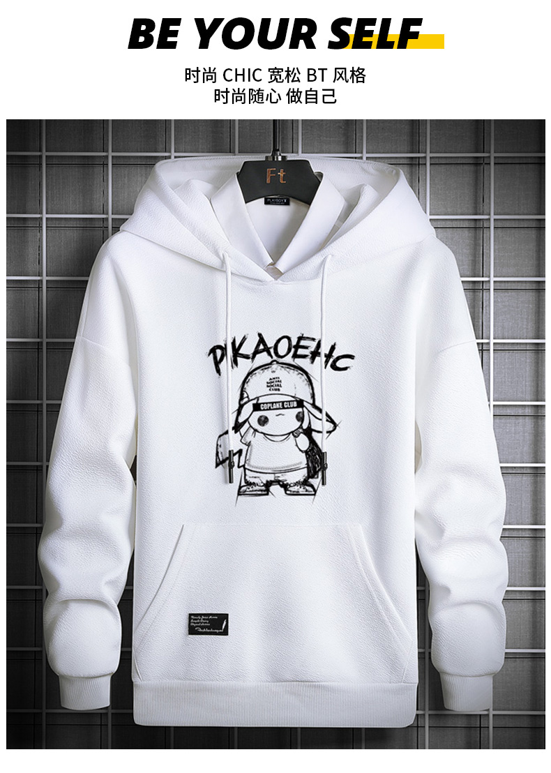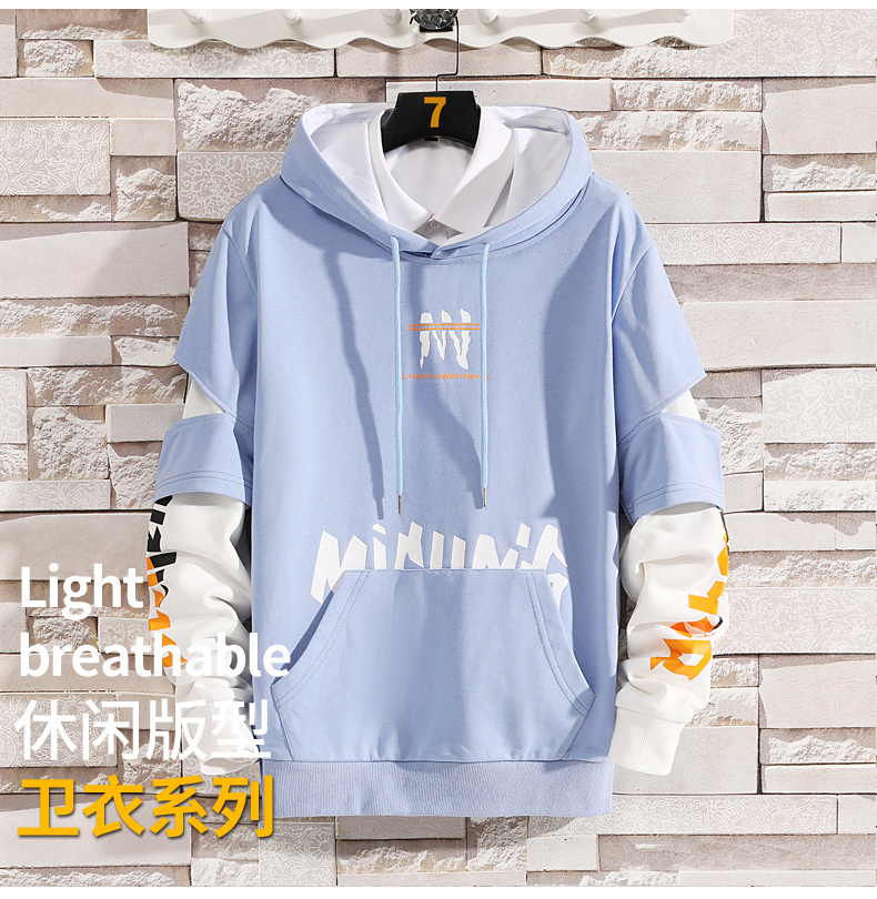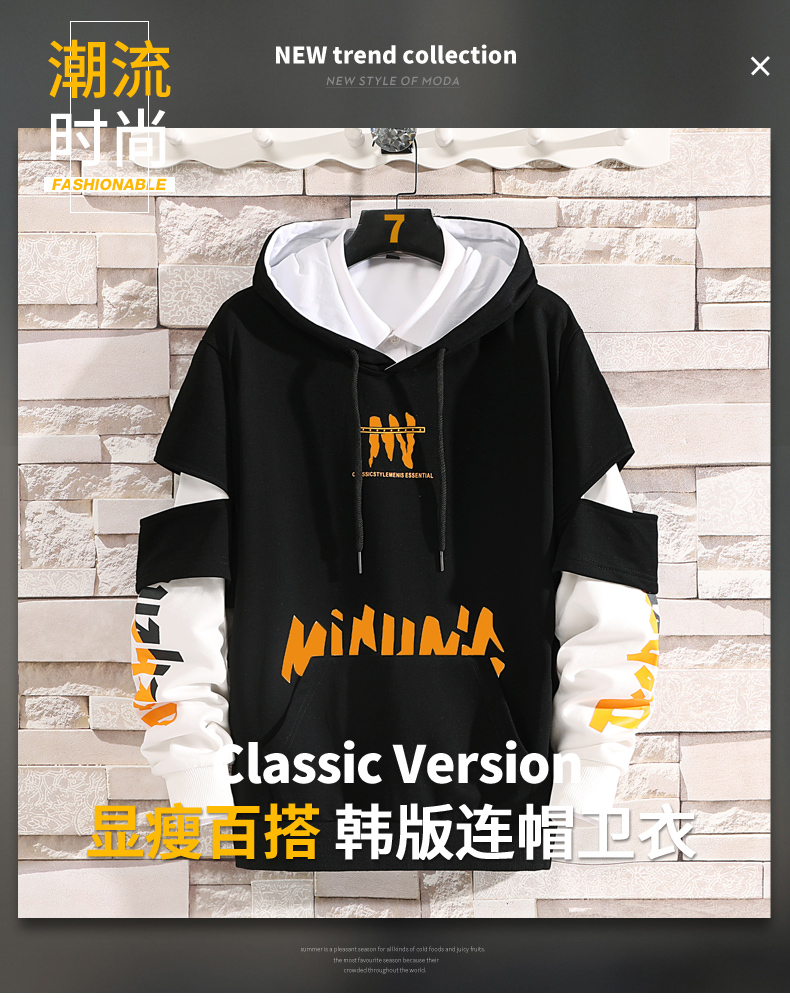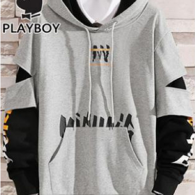 花花公子2020秋季新款假两件卫衣男连帽宽松潮牌男装衣服薄款学生