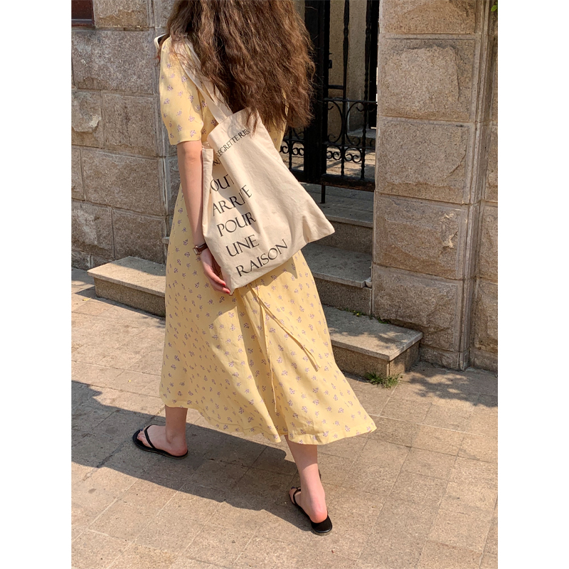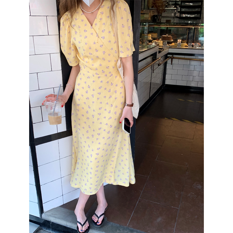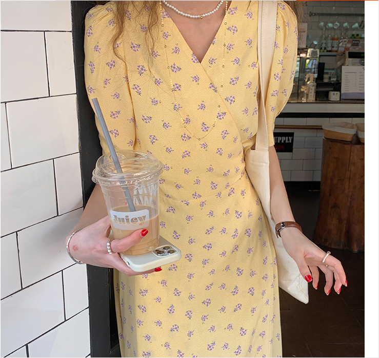 风格:通勤 领型:V领 腰型:高腰 颜色分类:蛋黄碎花