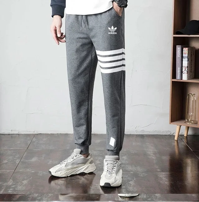 三叶草情侣运动裤四道杠束口裤