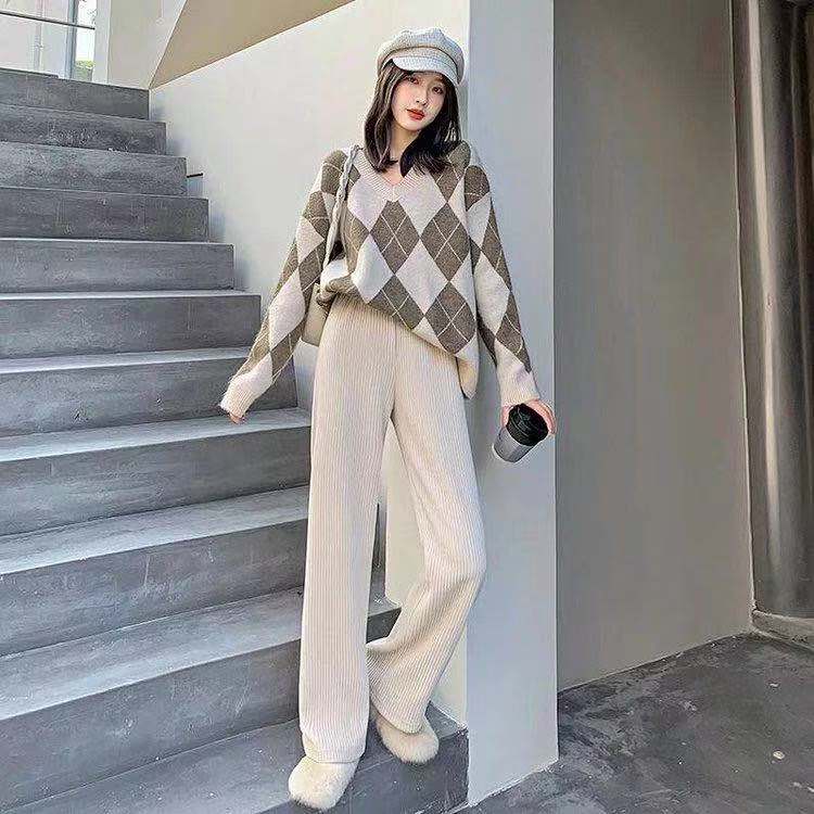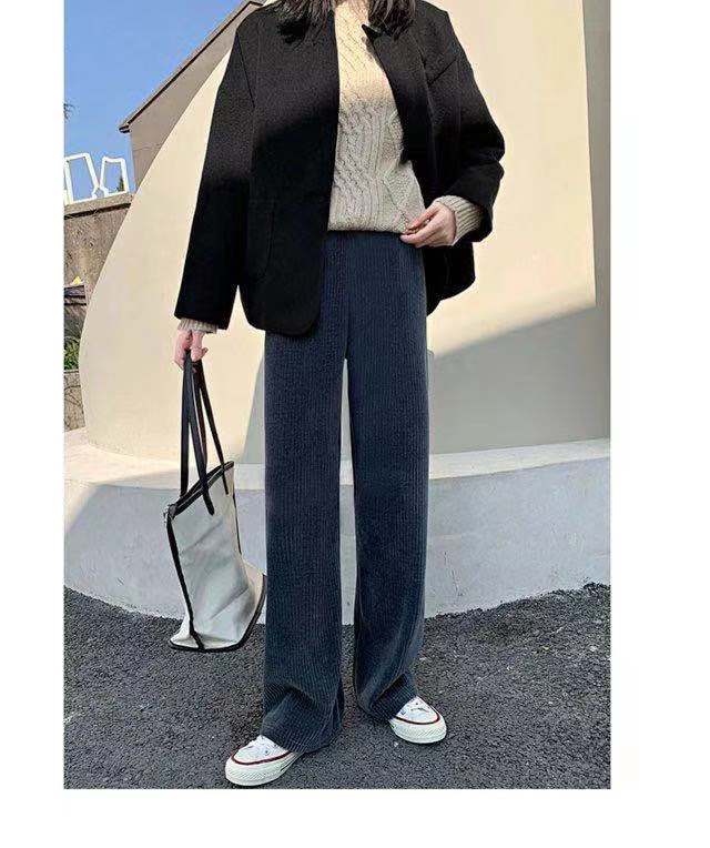 加厚灯芯绒阔腿裤秋冬款韩版垂直感超显瘦百搭休闲经典坑条裤子女