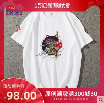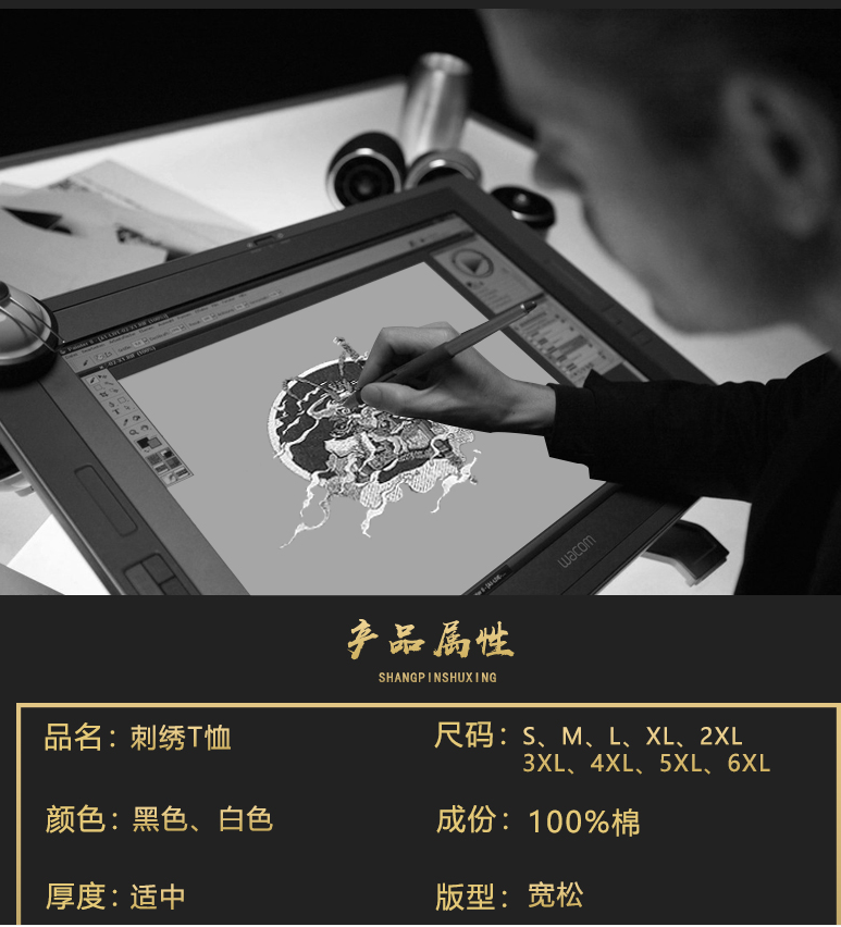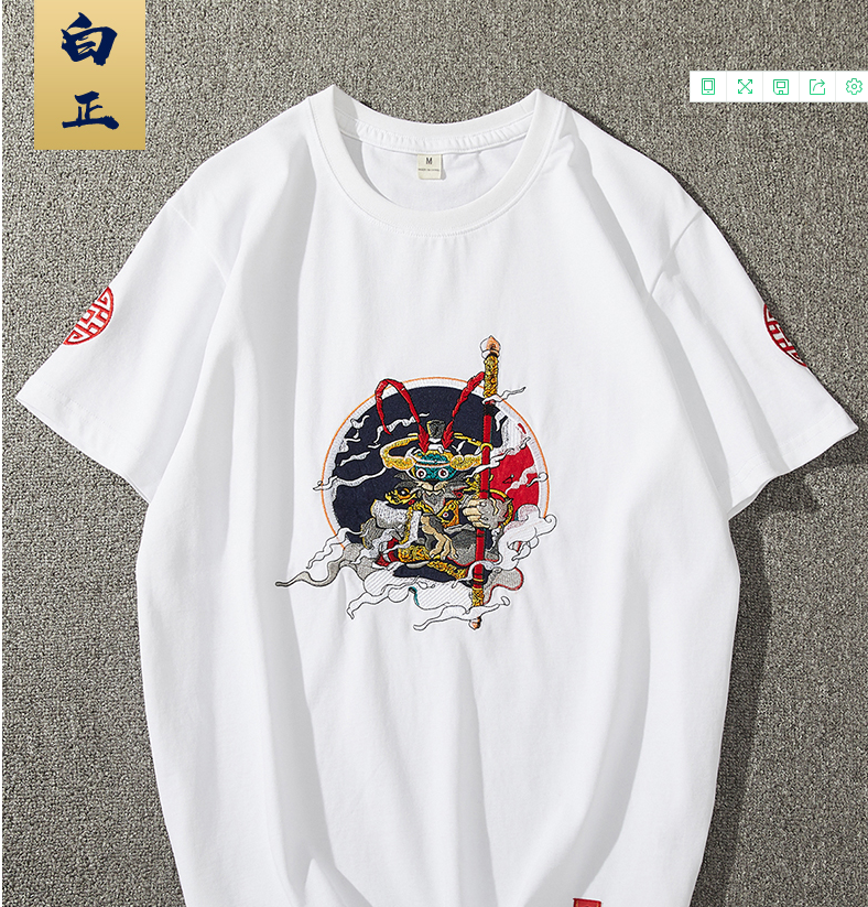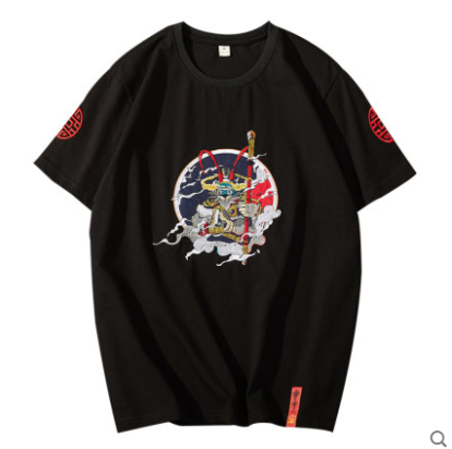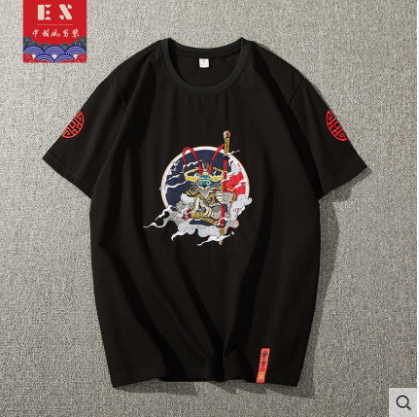 2021夏季中国风男装刺绣短袖T恤纯棉民族风半袖圆领体恤男士潮流