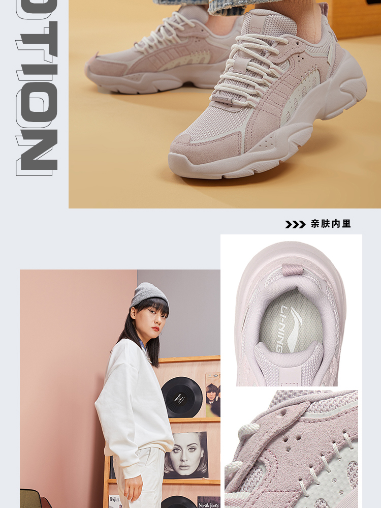 李宁休闲鞋女鞋男鞋夏季复古小白鞋增高厚底老爹鞋网面透气运动鞋