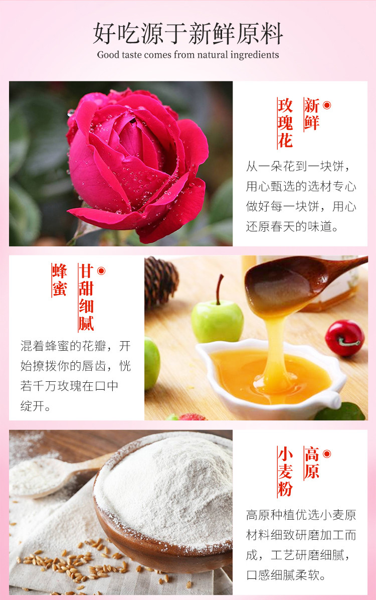 | 分类: | 鲜花饼 | 口味: | 玫瑰味 |
