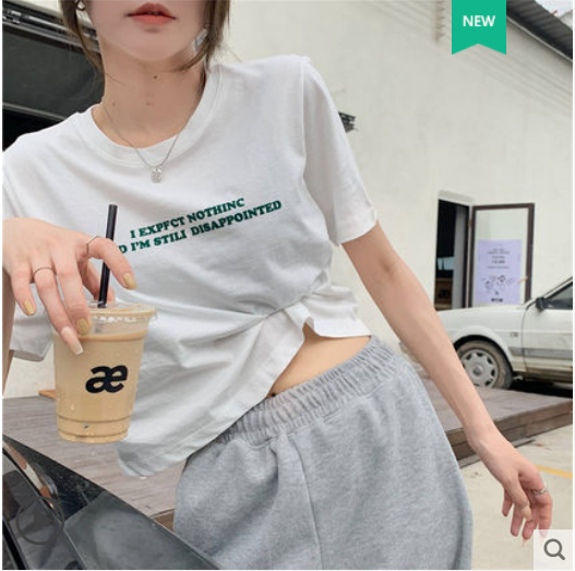 2021年夏季新款设计感小众灰色上衣宽松女装短款短袖T恤ins潮洋气