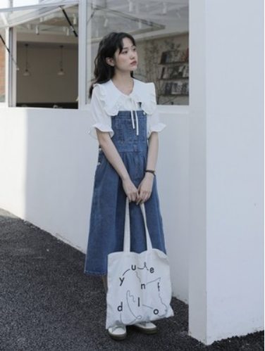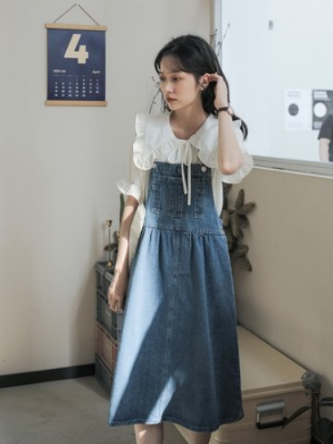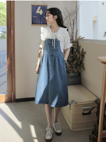 牛仔背带裙女夏季2021年新款显瘦蓝色学生中长款日系森系连衣裙