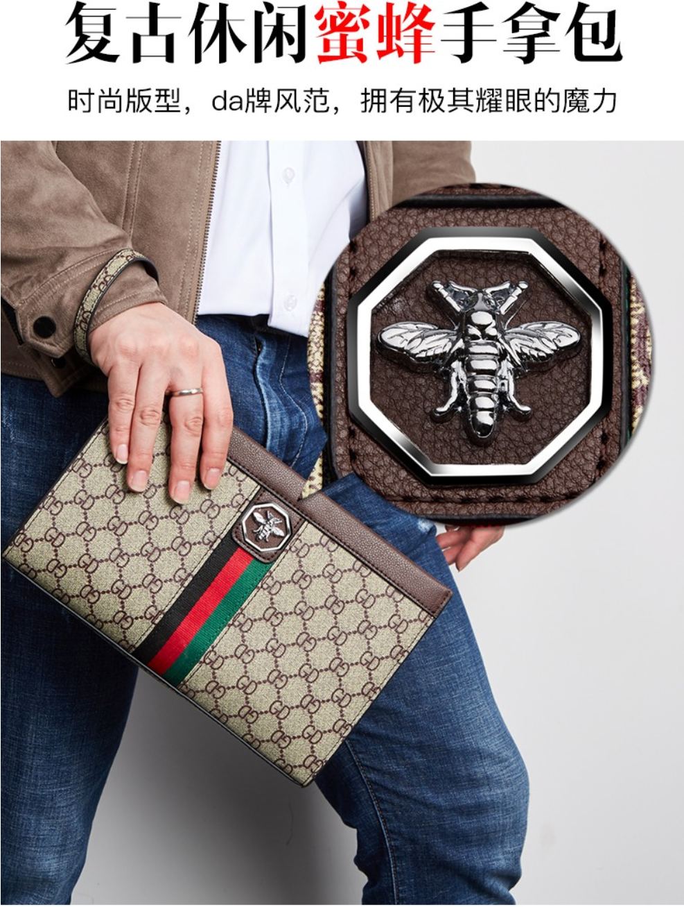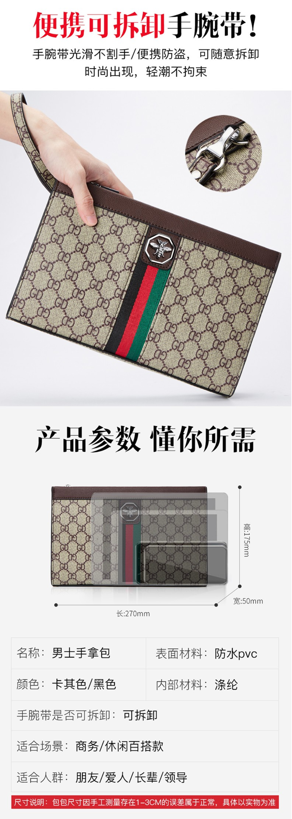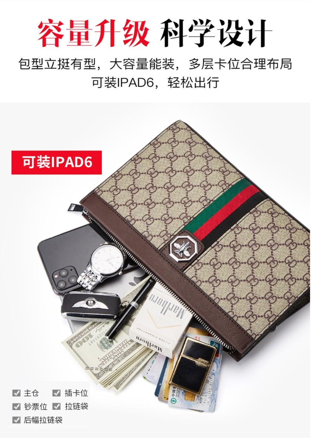 真皮手拿拉链男包 休闲商务简约奢侈品 手提手抓夹信封钱包 潮牌