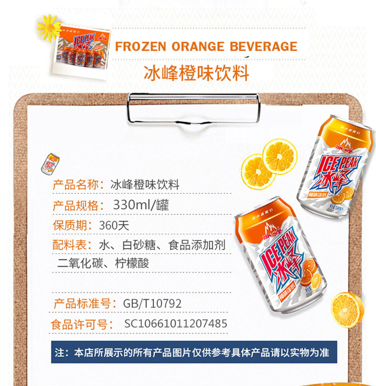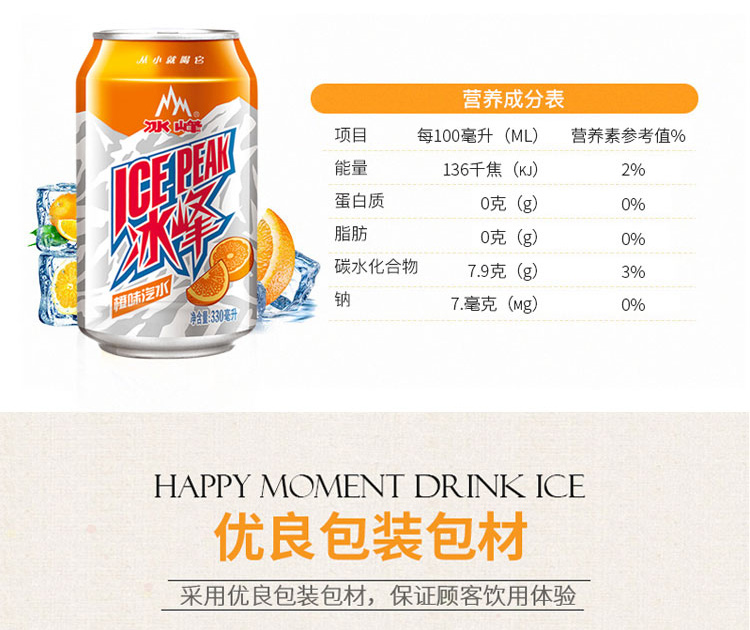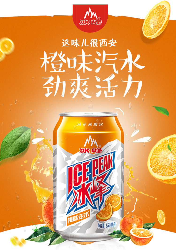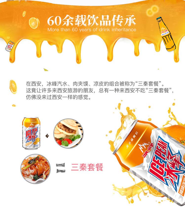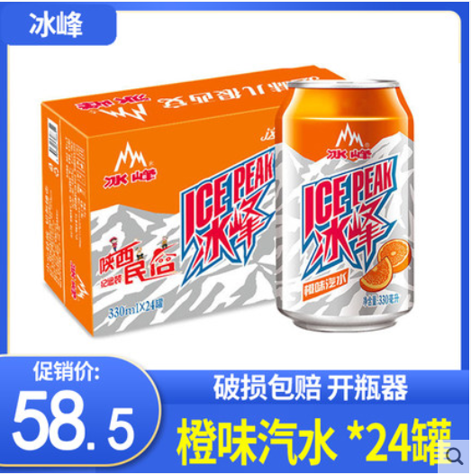 冰峰碳酸饮料饮品橙味汽水330ml*24罐陕西特产西安老汽水果汁包邮