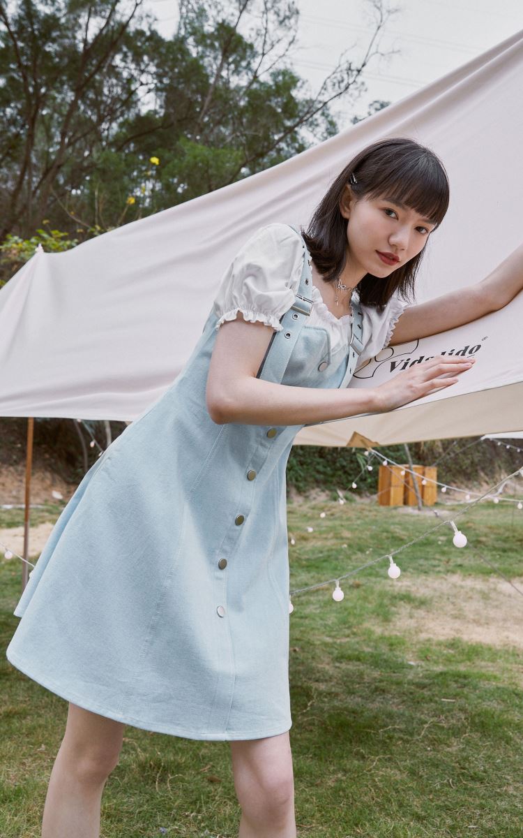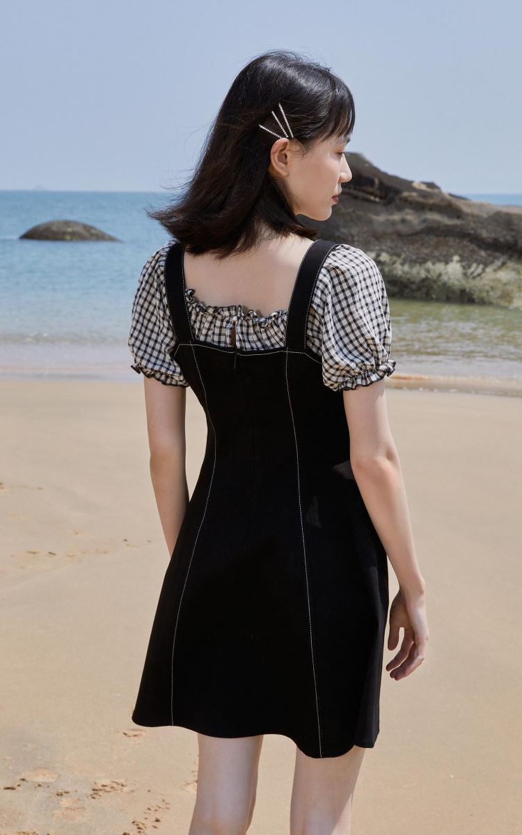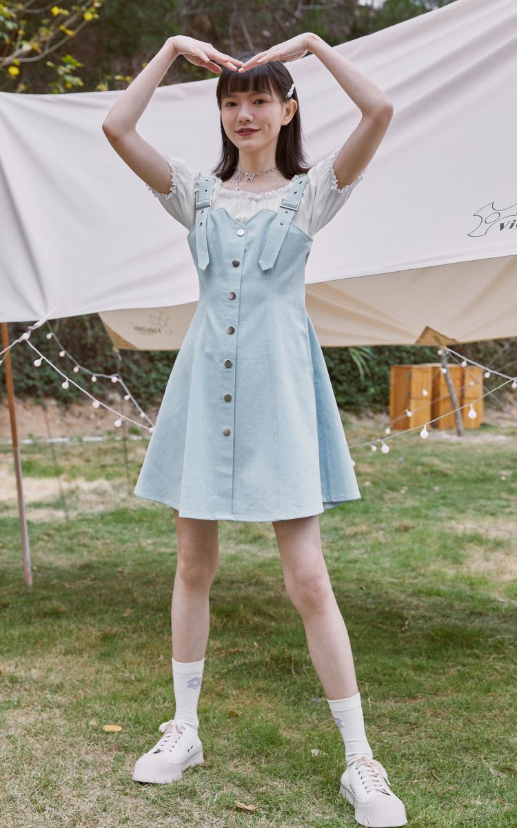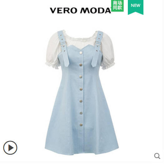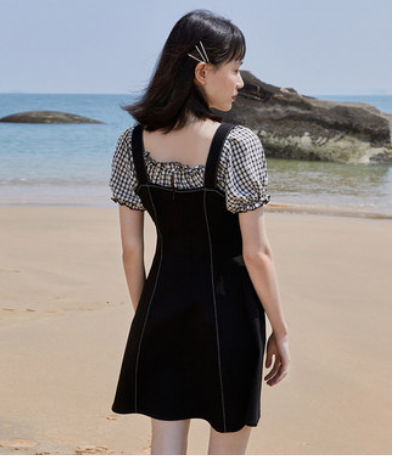 牛仔连衣裙女夏法式小众气质收腰小个子泡泡袖长短款裙子大码短袖
