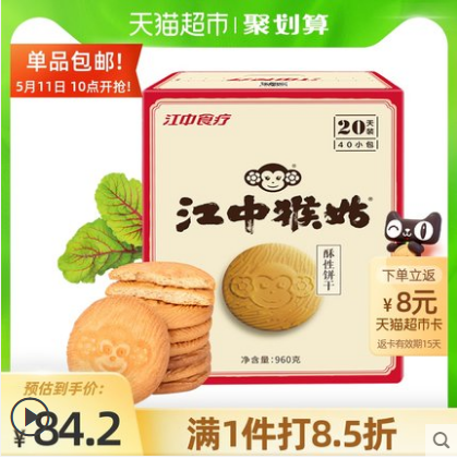 江中食疗酥性饼干饼干20天装960g代餐零食猴头菇猴菇