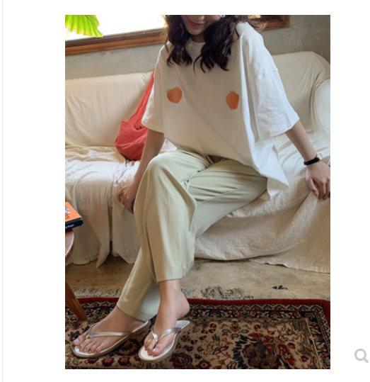 最小的海 韩版桃子刺绣短袖t恤女夏新款休闲橘粉纯色宽松显瘦上衣