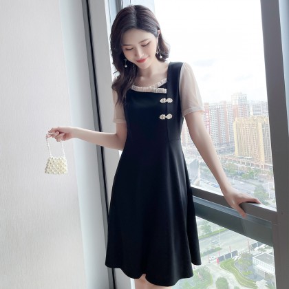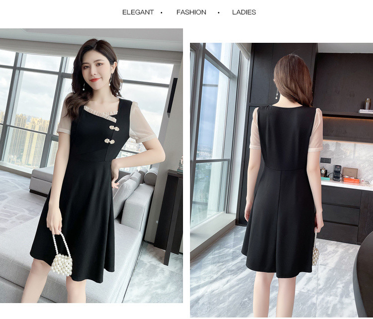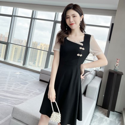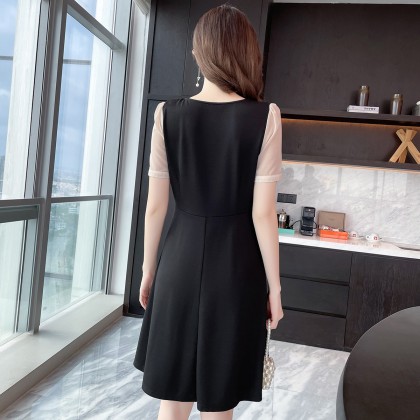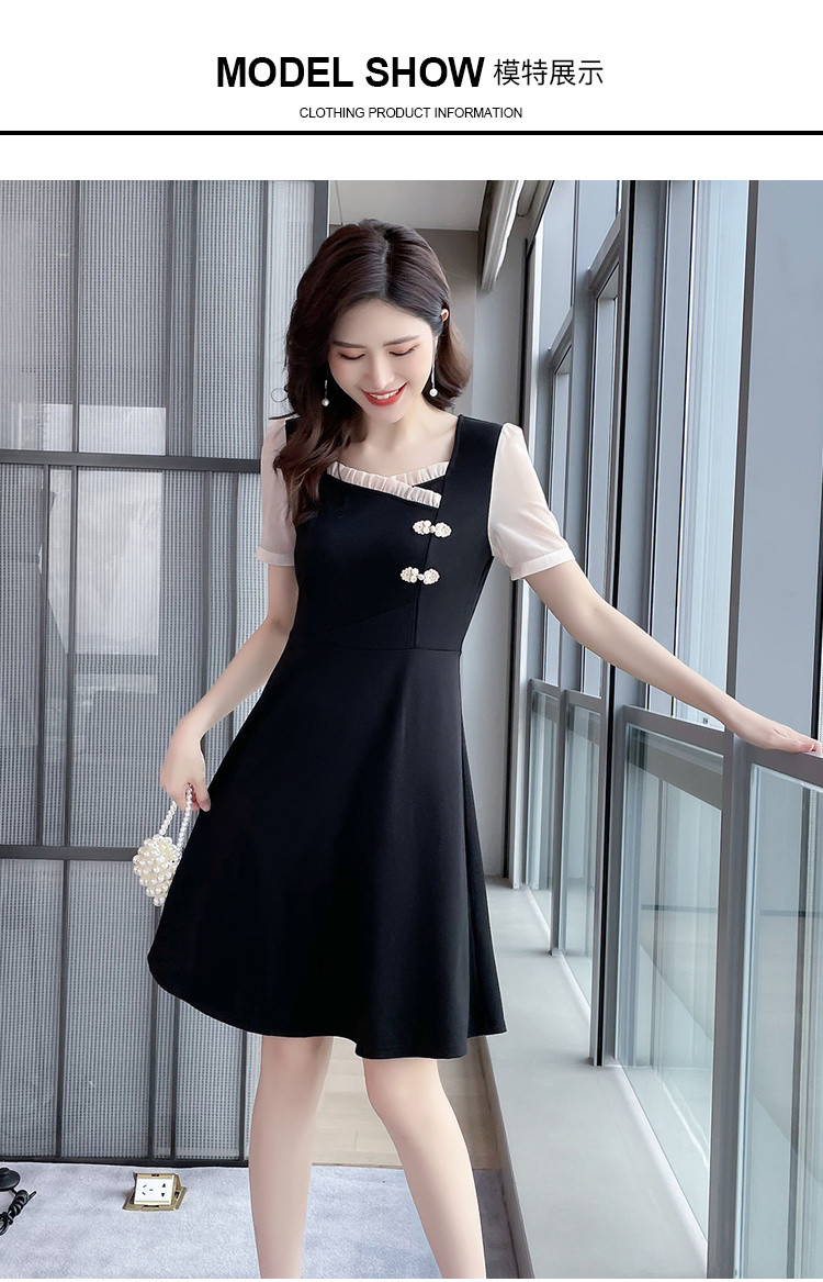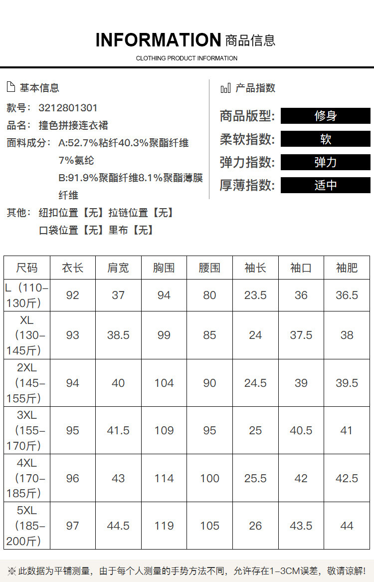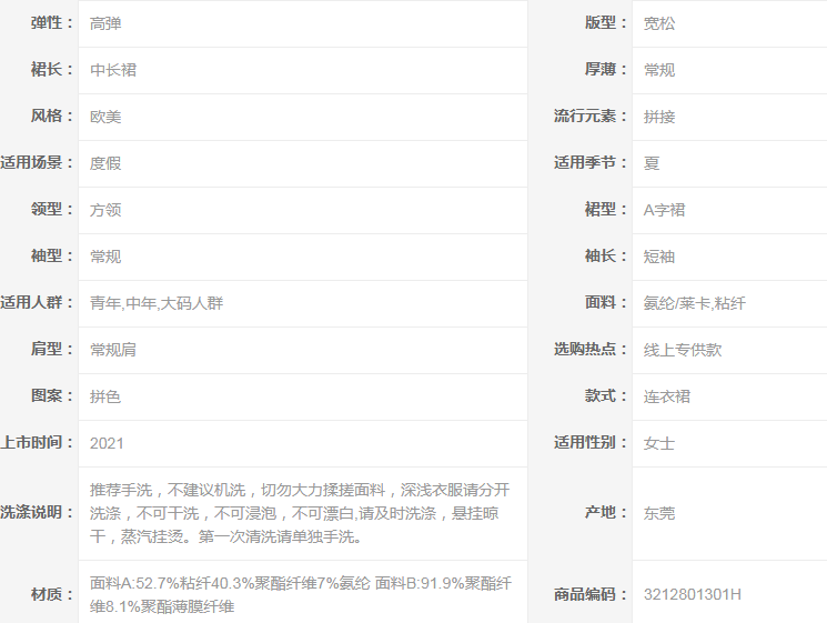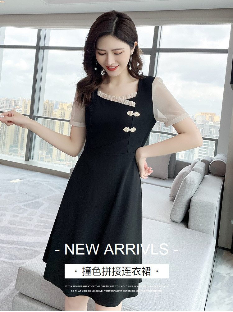 2021夏季新款肥mm百搭撞色拼接大码女装减龄胖妹妹方领连衣裙