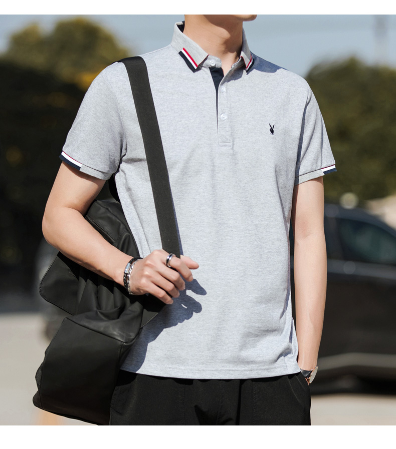 花花公子T恤男2021夏季新款男装商务polo衫男士短袖体恤翻领上衣