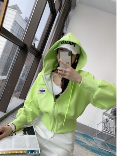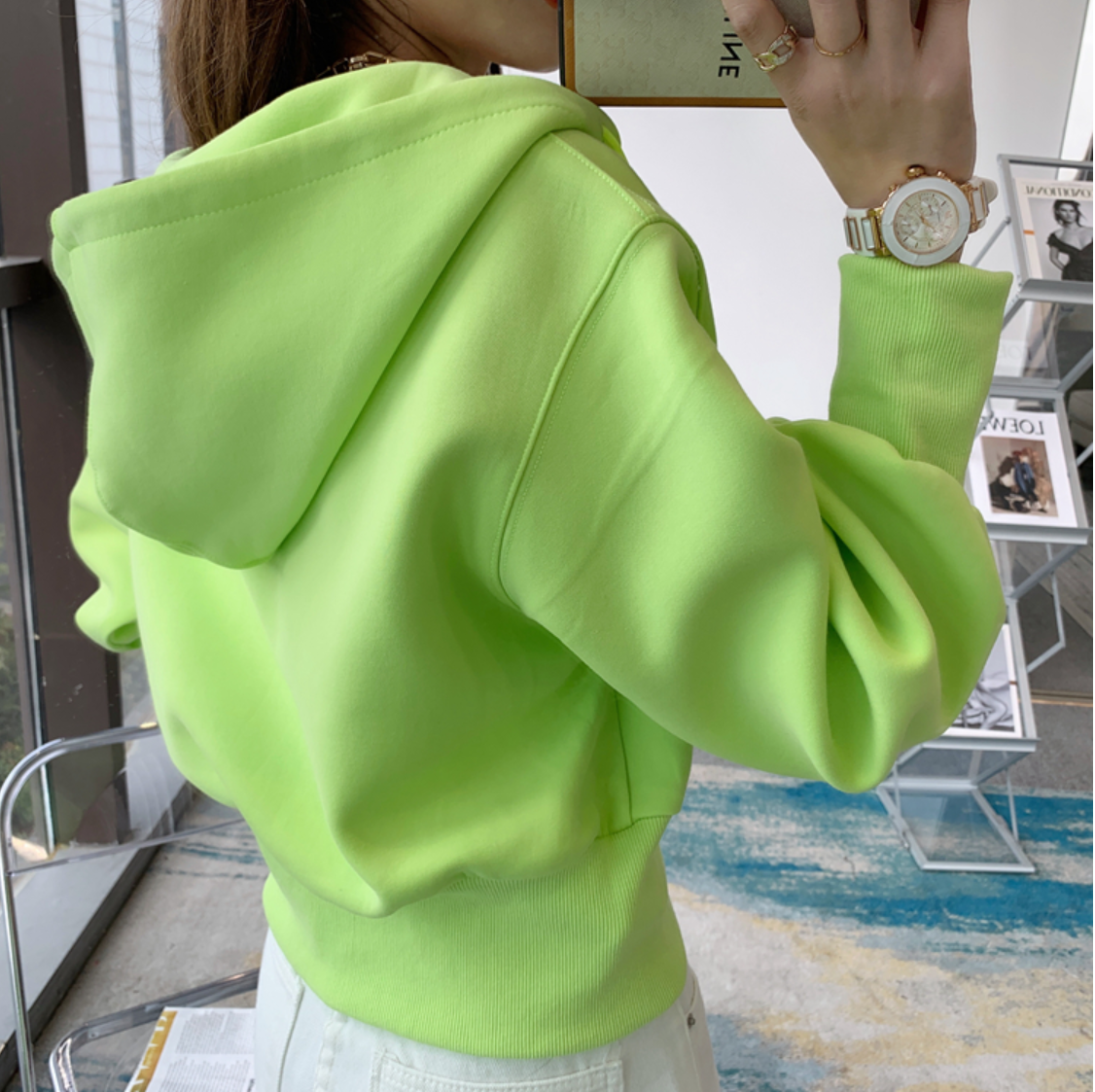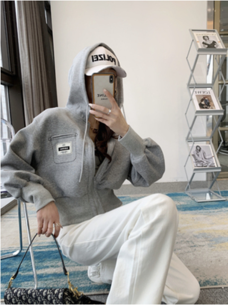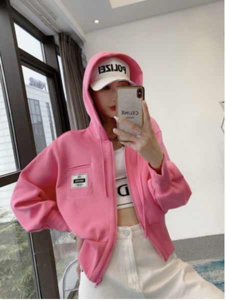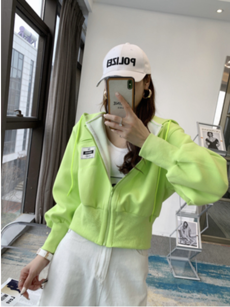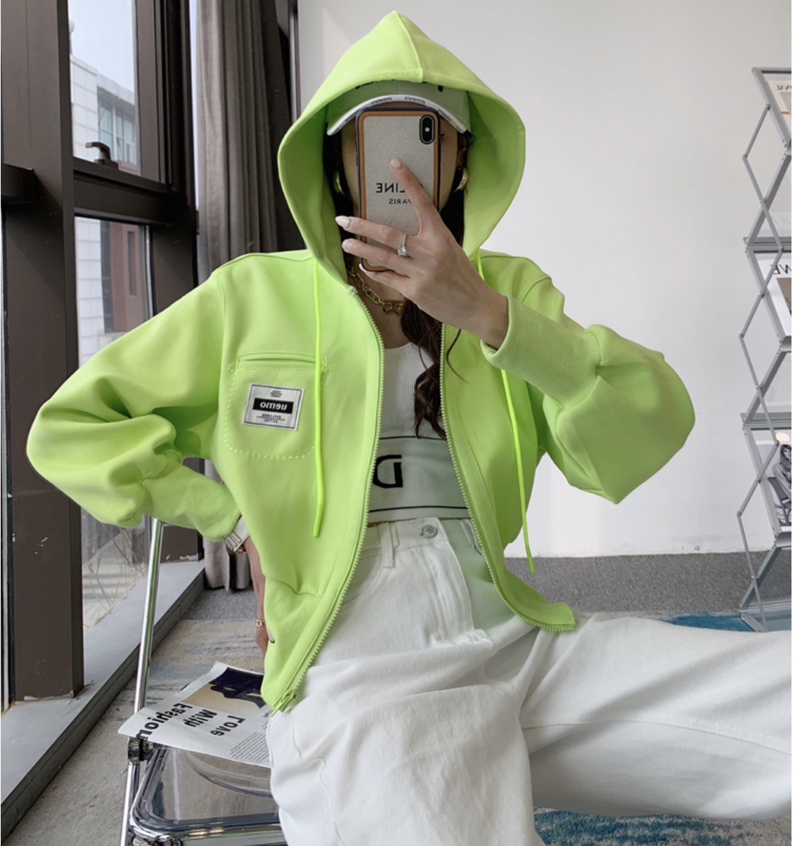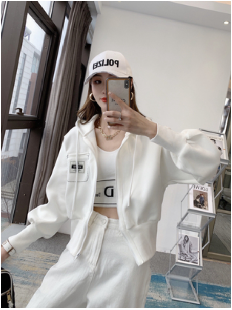 短款连帽外套女2021春季新款韩版宽松休闲简约减龄chic卫衣开衫潮