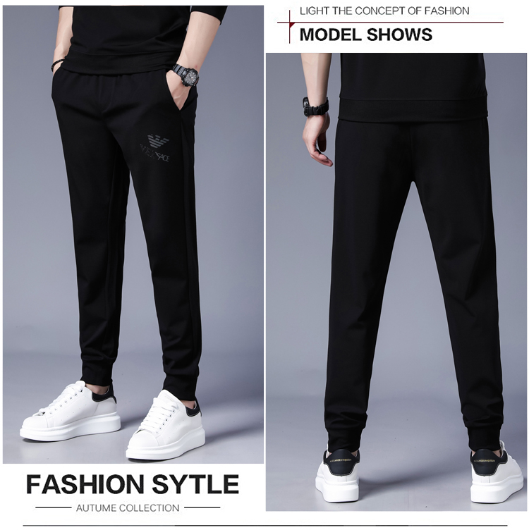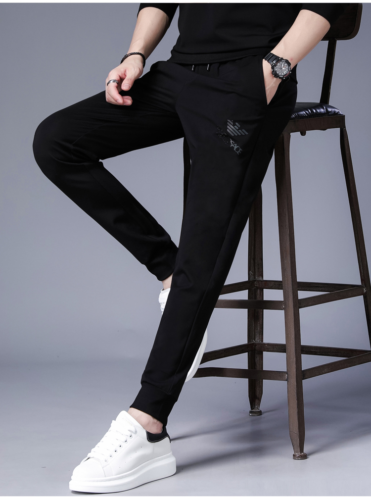 奇 阿玛尼 亚男士休闲裤春夏季运动长裤卫裤修身夏季薄款青年裤子 黑色