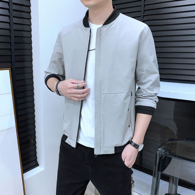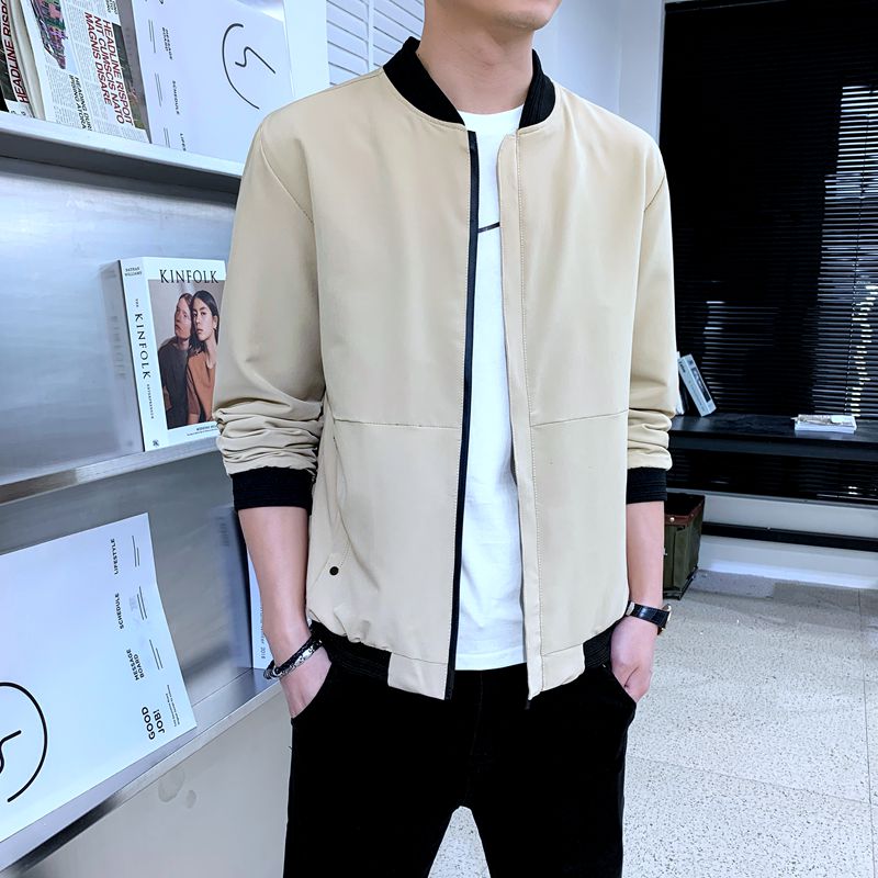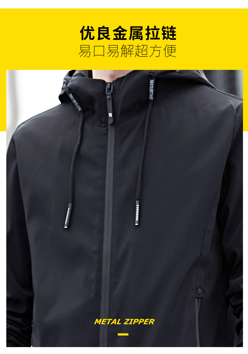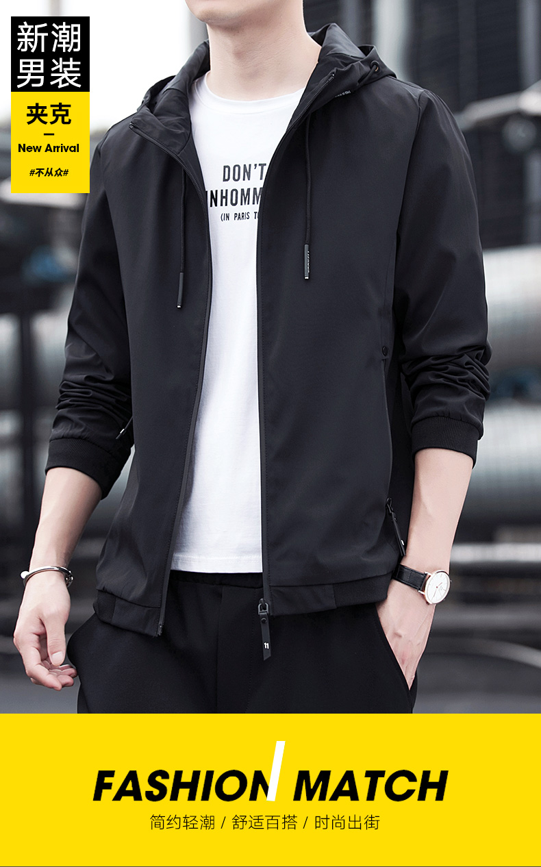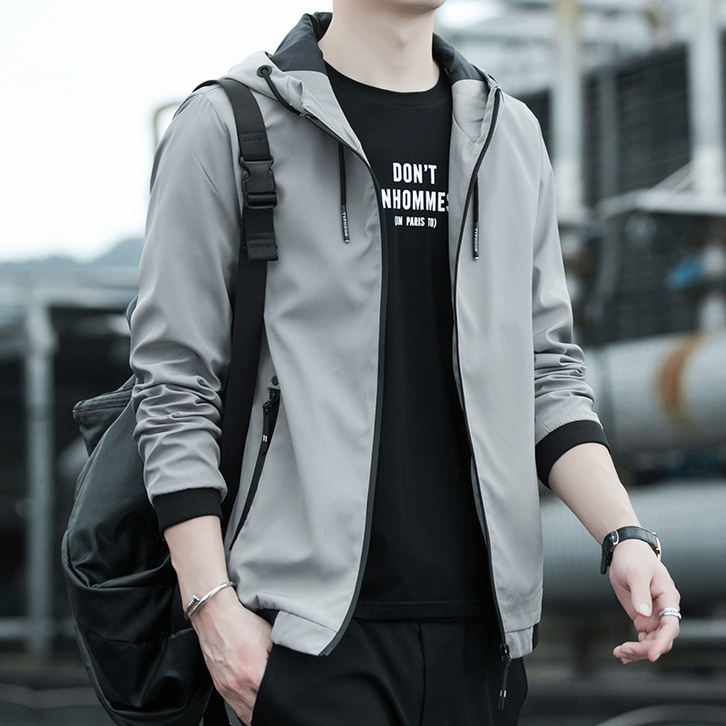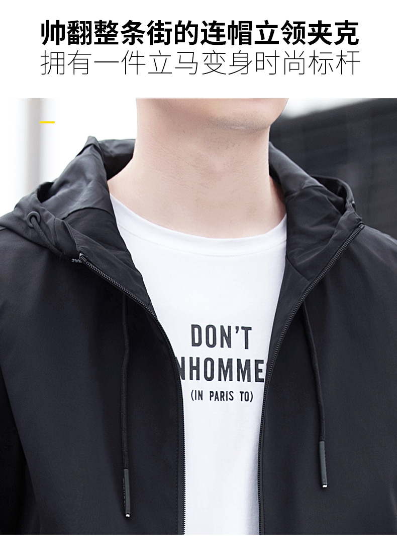富贵鸟2021春秋季纯色男装外套青年韩版休闲夹克连帽帅气百搭上衣