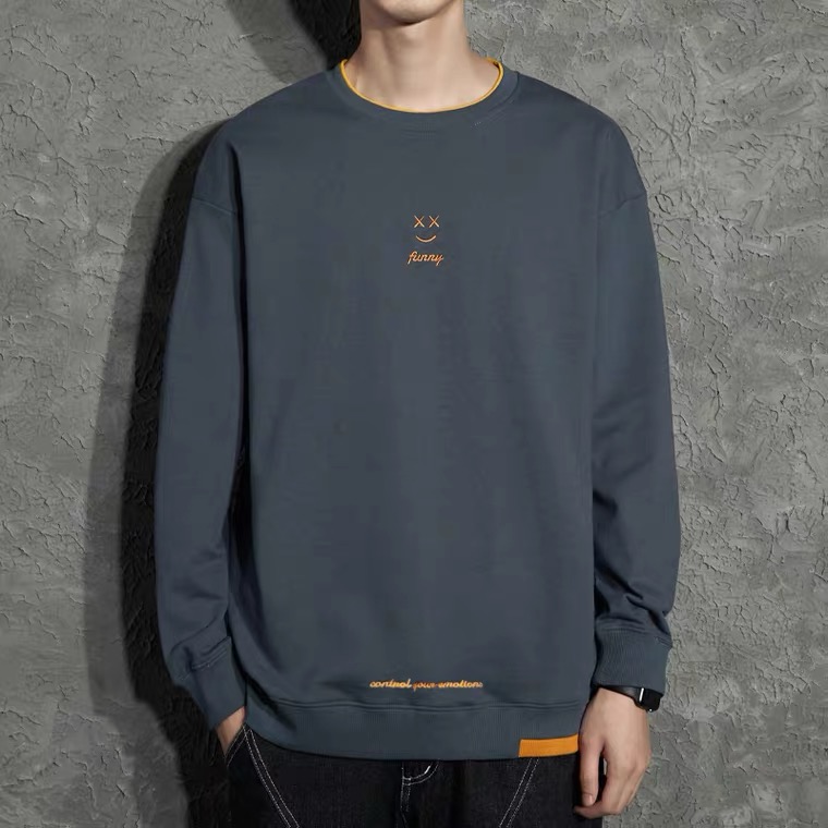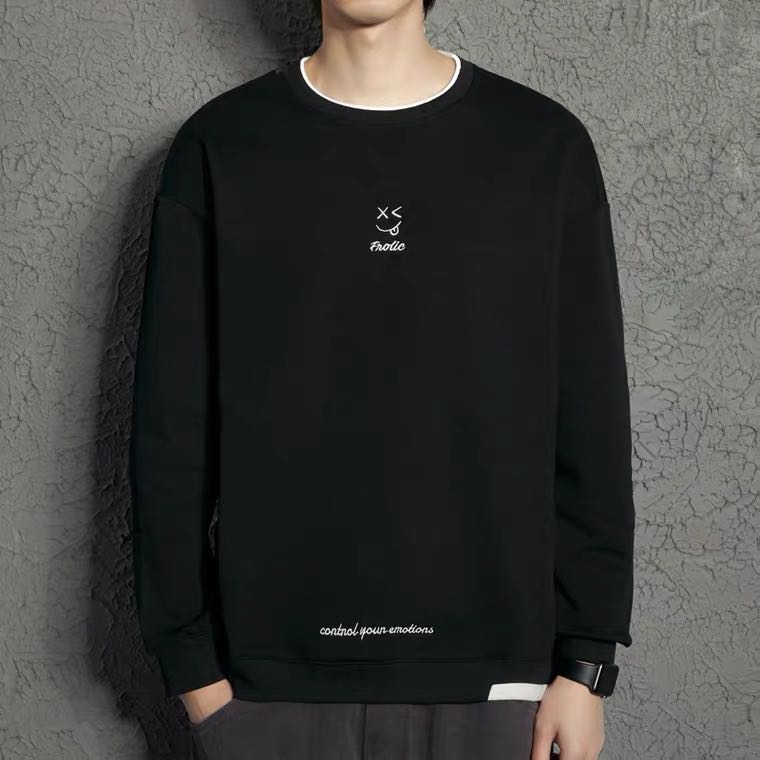 春秋款圆领卫衣男潮ins宽松纯棉薄款春秋潮流百搭无帽长袖上衣服