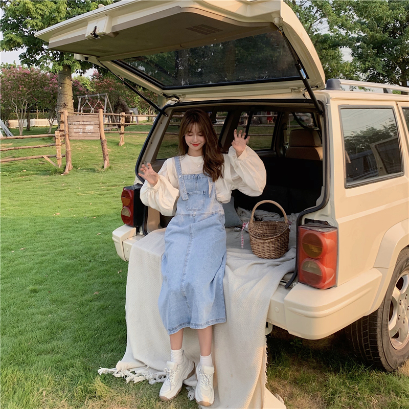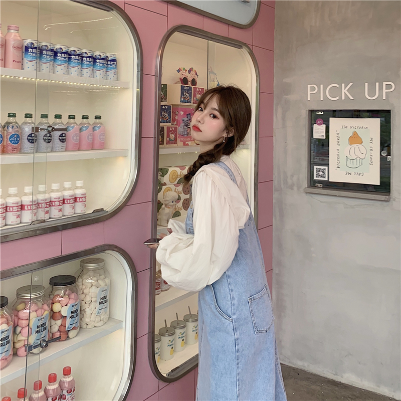 颜色分类: 杏色衬衫 牛仔背带裙 杏色衬衫+牛仔背带裙
