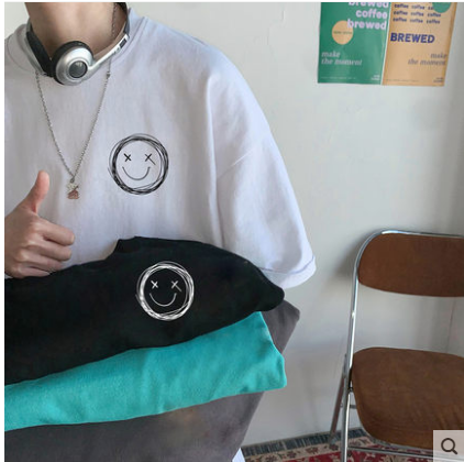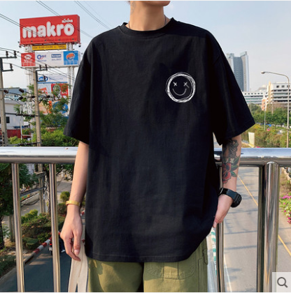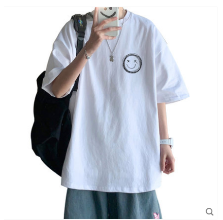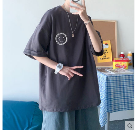 港风t恤男宽松衣服男生短袖ins潮牌半袖五分袖潮流韩版上衣bf体恤