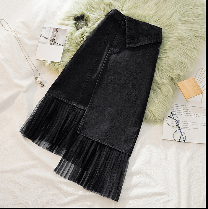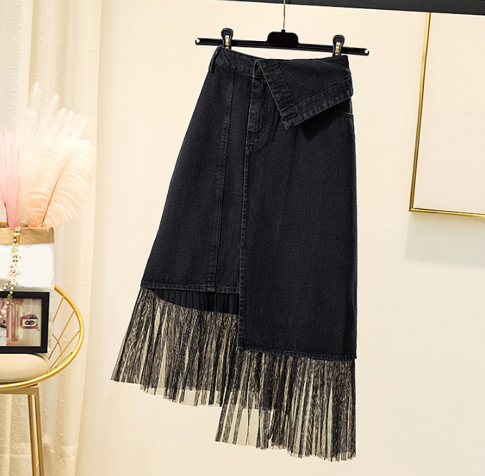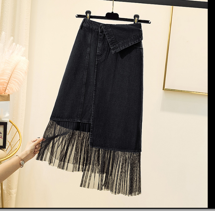 适合胖子穿的裙子春季2021年新款大码女装牛仔半身裙女包臀A字裙