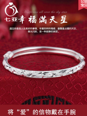 满天星银手镯女纯银实心999足银镯子时尚年轻款首饰520礼物送女友