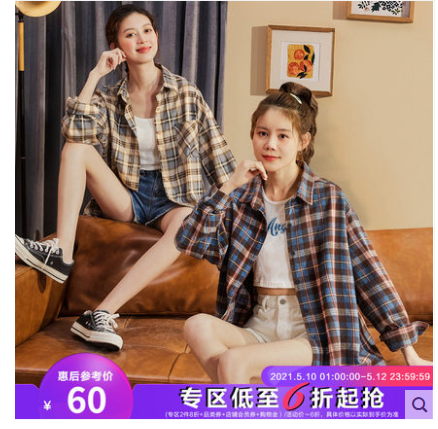 新款2021年春款新时尚格子衬衫女长袖衬衣外套韩版设计感小众上衣