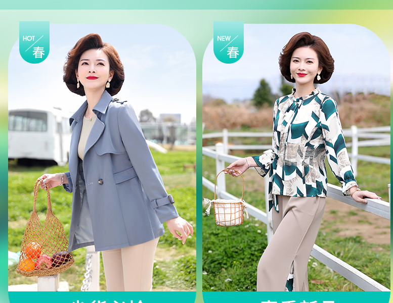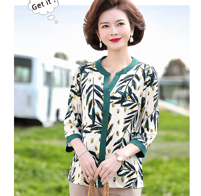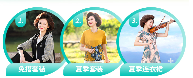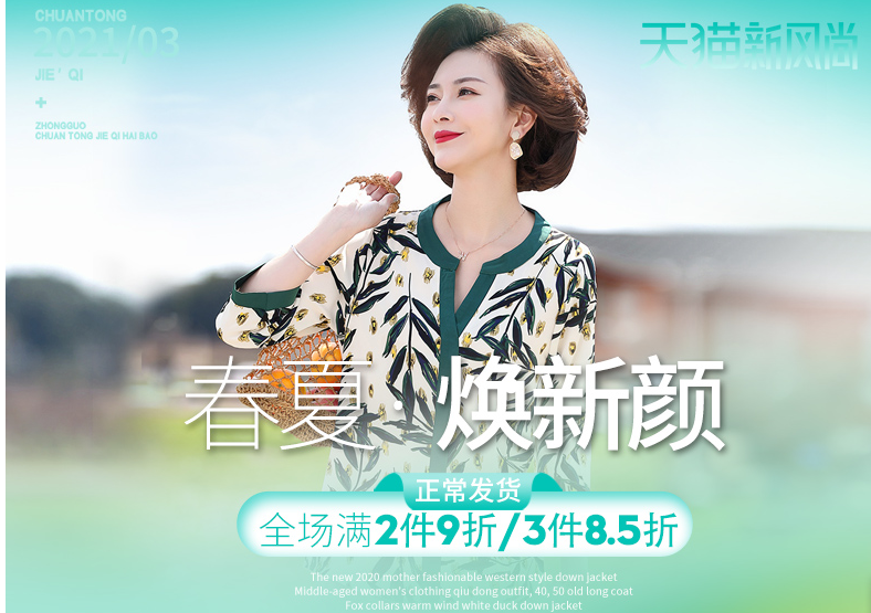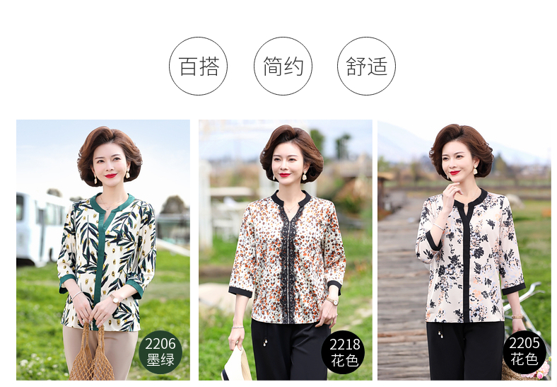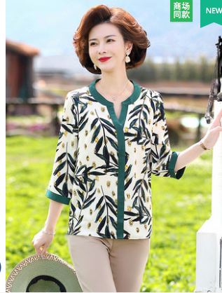 妈妈春装洋气雪纺上衣服中年女装衬衫中老年夏装大码短袖T恤套装