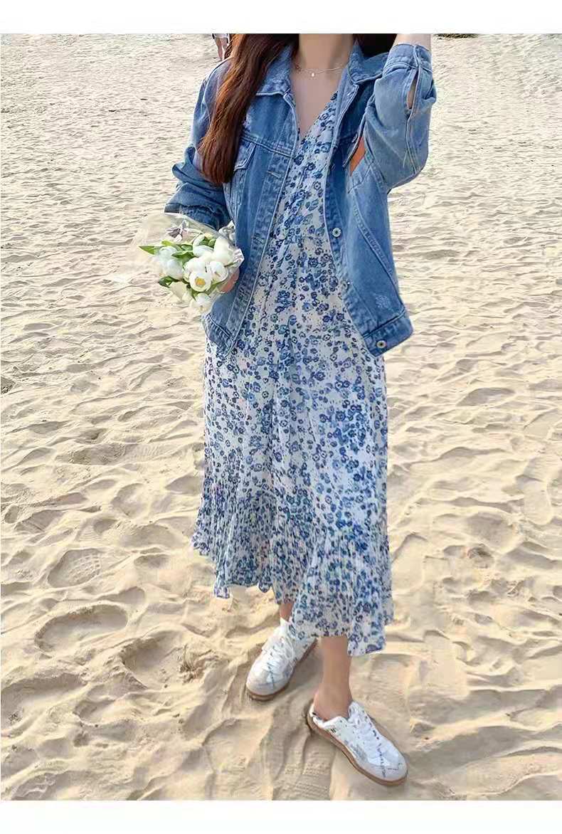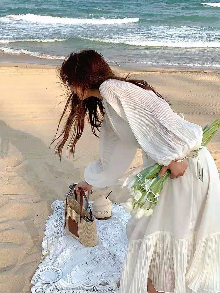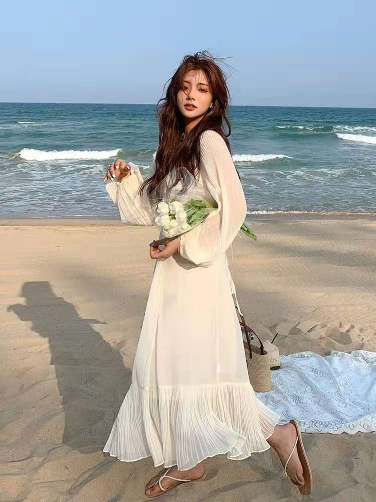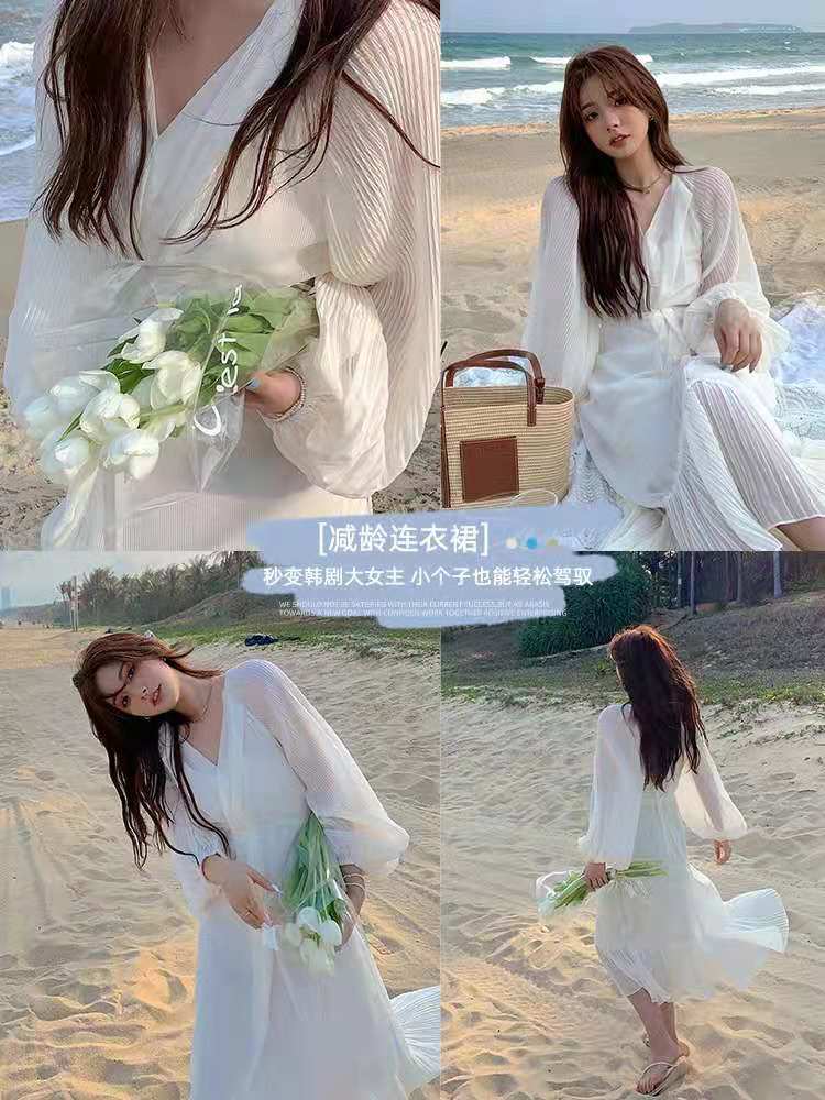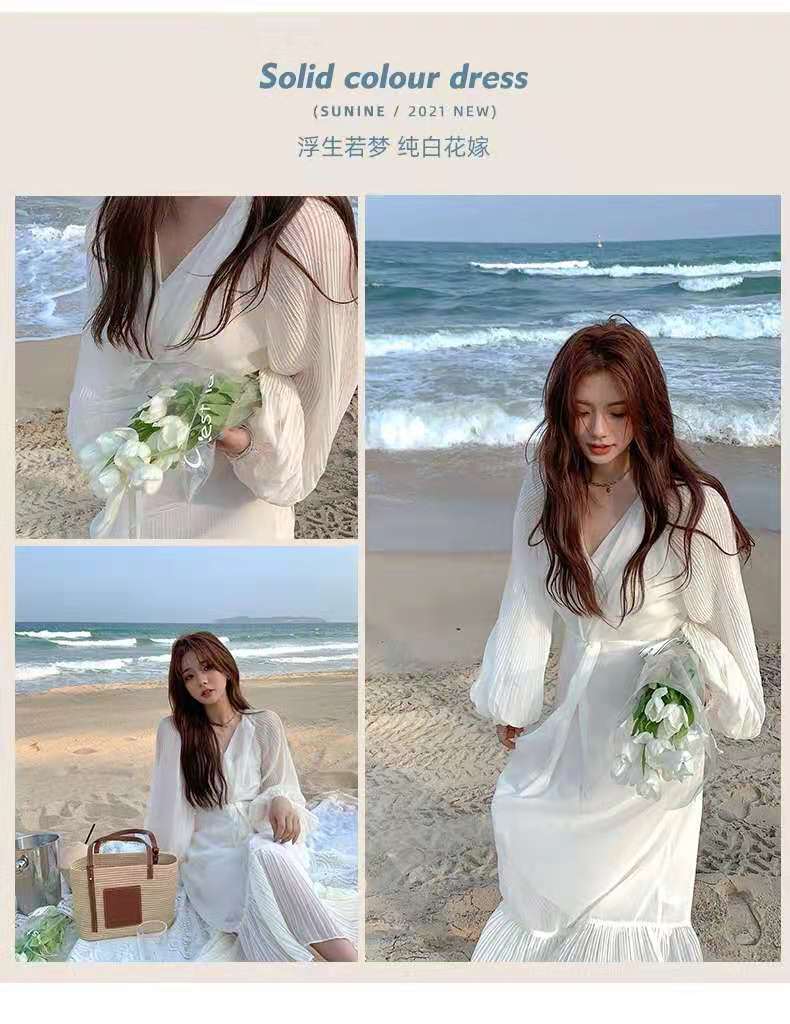 连衣裙2021年新款春夏白色法式长裙少女碎花雪纺修身显瘦气质裙子