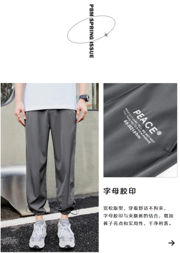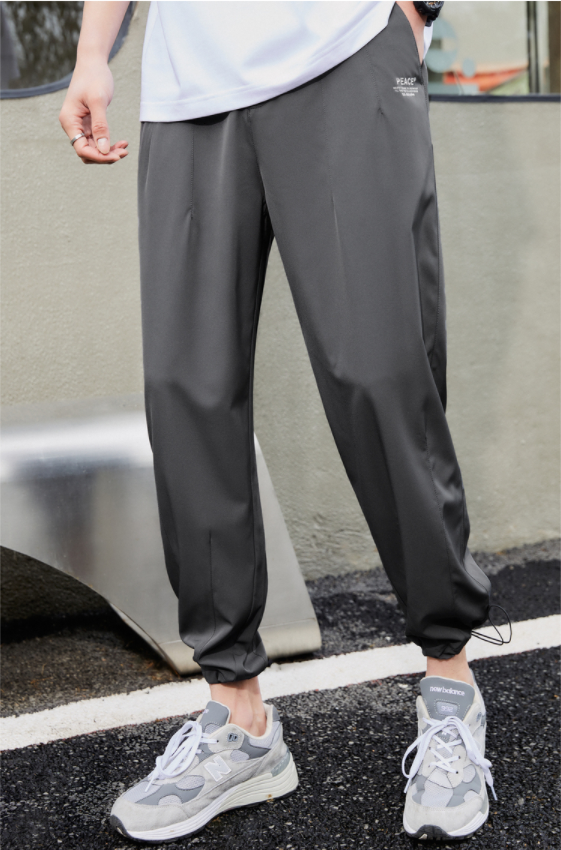太平鸟男装 休闲九分裤男2021年夏季新款潮流运动抽绳灰色束脚裤