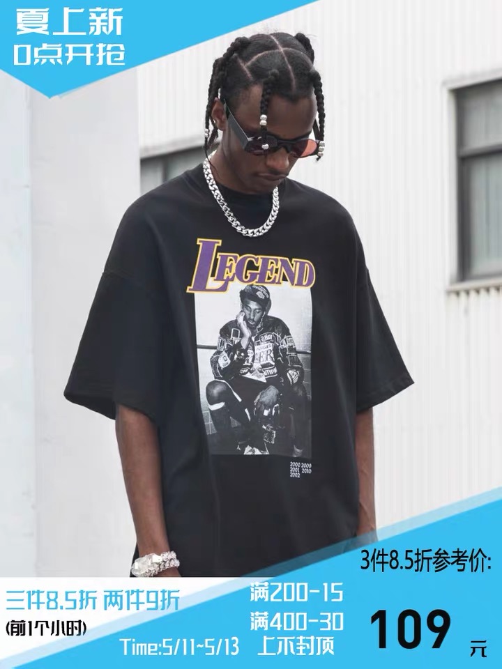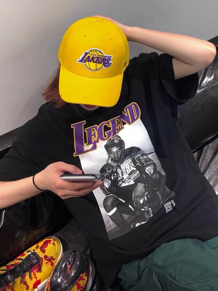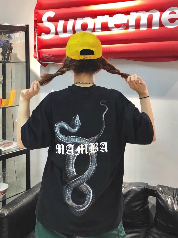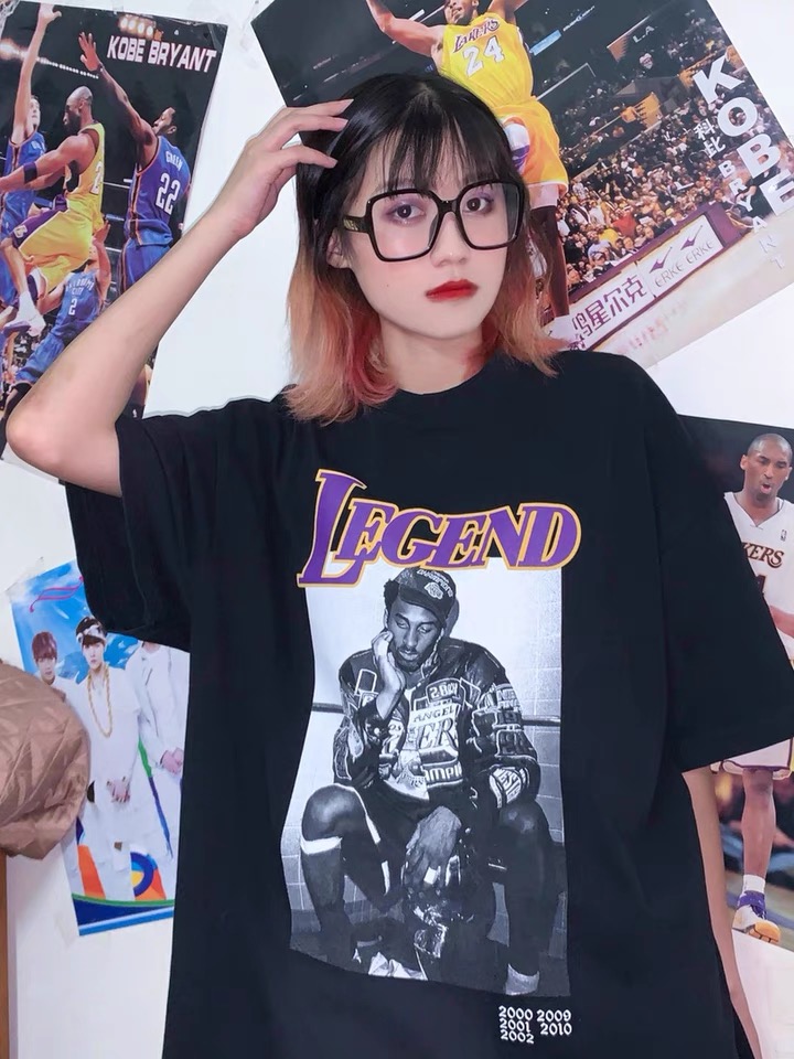 INS夏季致敬科比湖人队短袖t恤欧美高街潮牌黑曼巴宽松男女篮球t恤