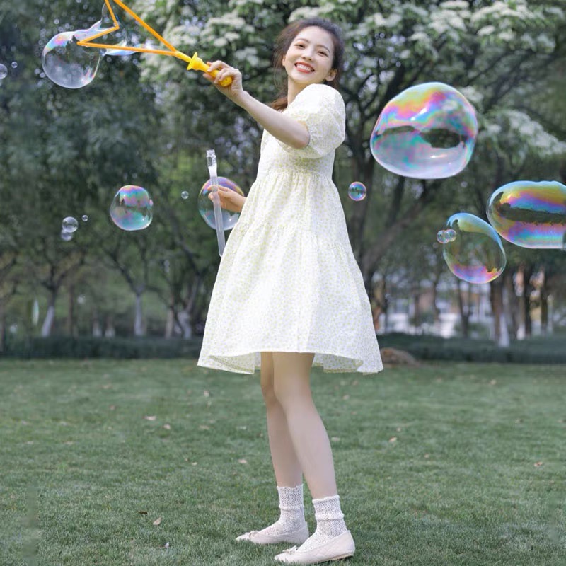 2021年新款早春茶歇裙子chic甜美法式收腰初恋仙女温柔风连衣裙夏