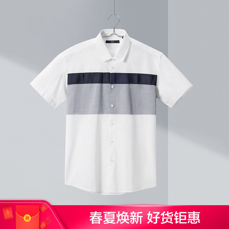 【舒适面料】龙创男士时尚棉质撞色洗水休闲短袖衬衫