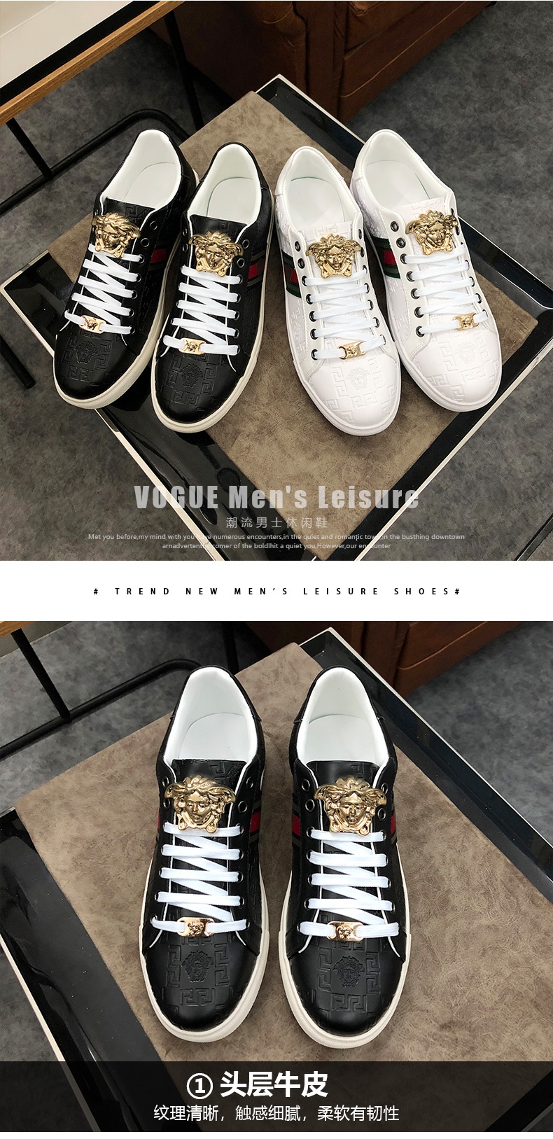 欧洲站新款美杜莎春季潮流小白鞋男板鞋真皮潮牌百搭轻奢休闲男鞋