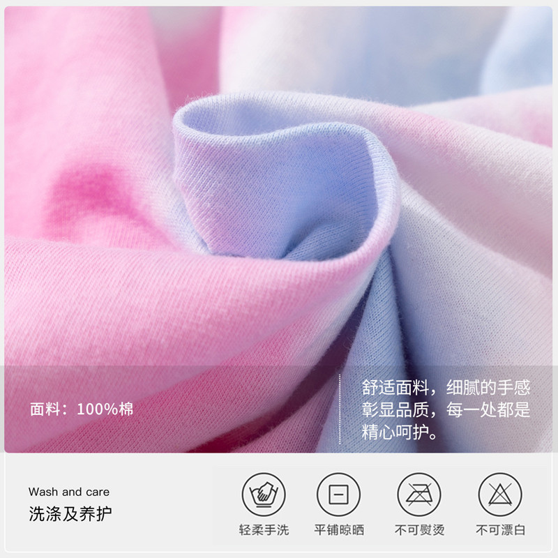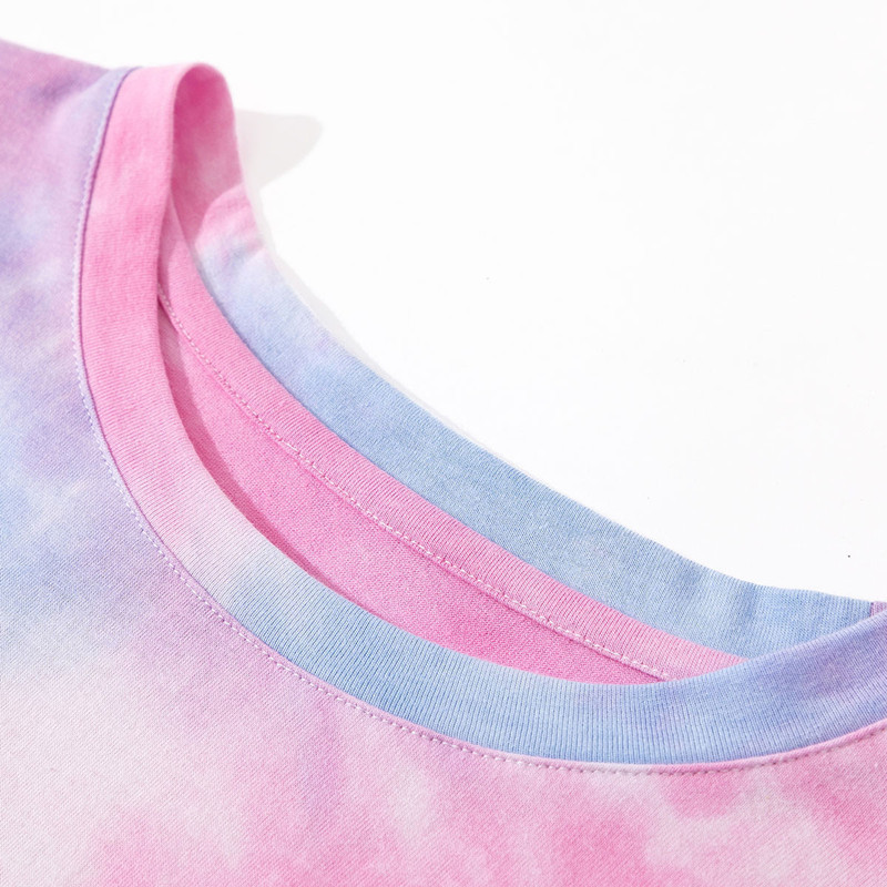 港风休闲扎染宽松纯棉T恤女2021圆领印花上衣国潮