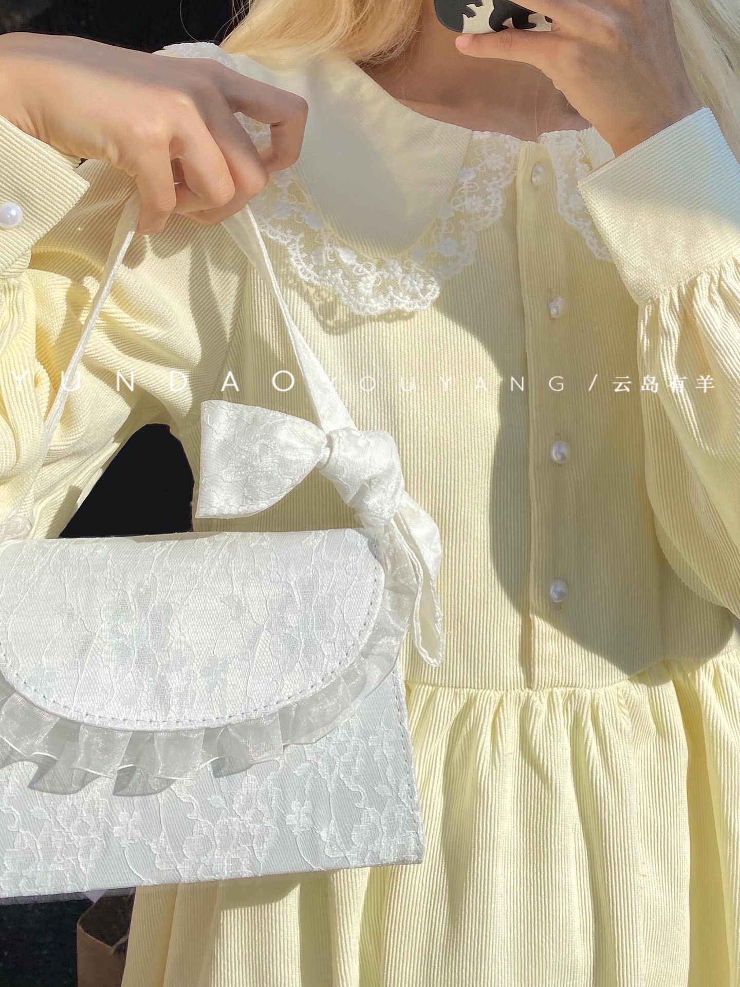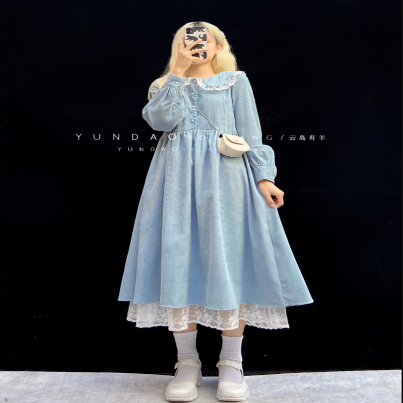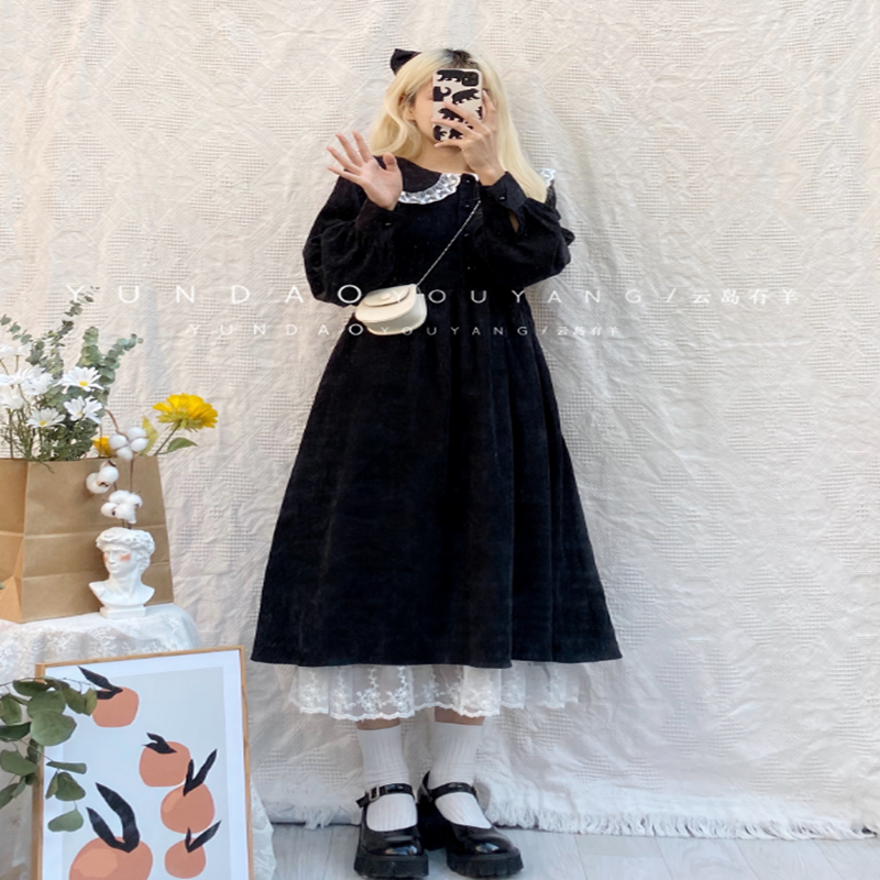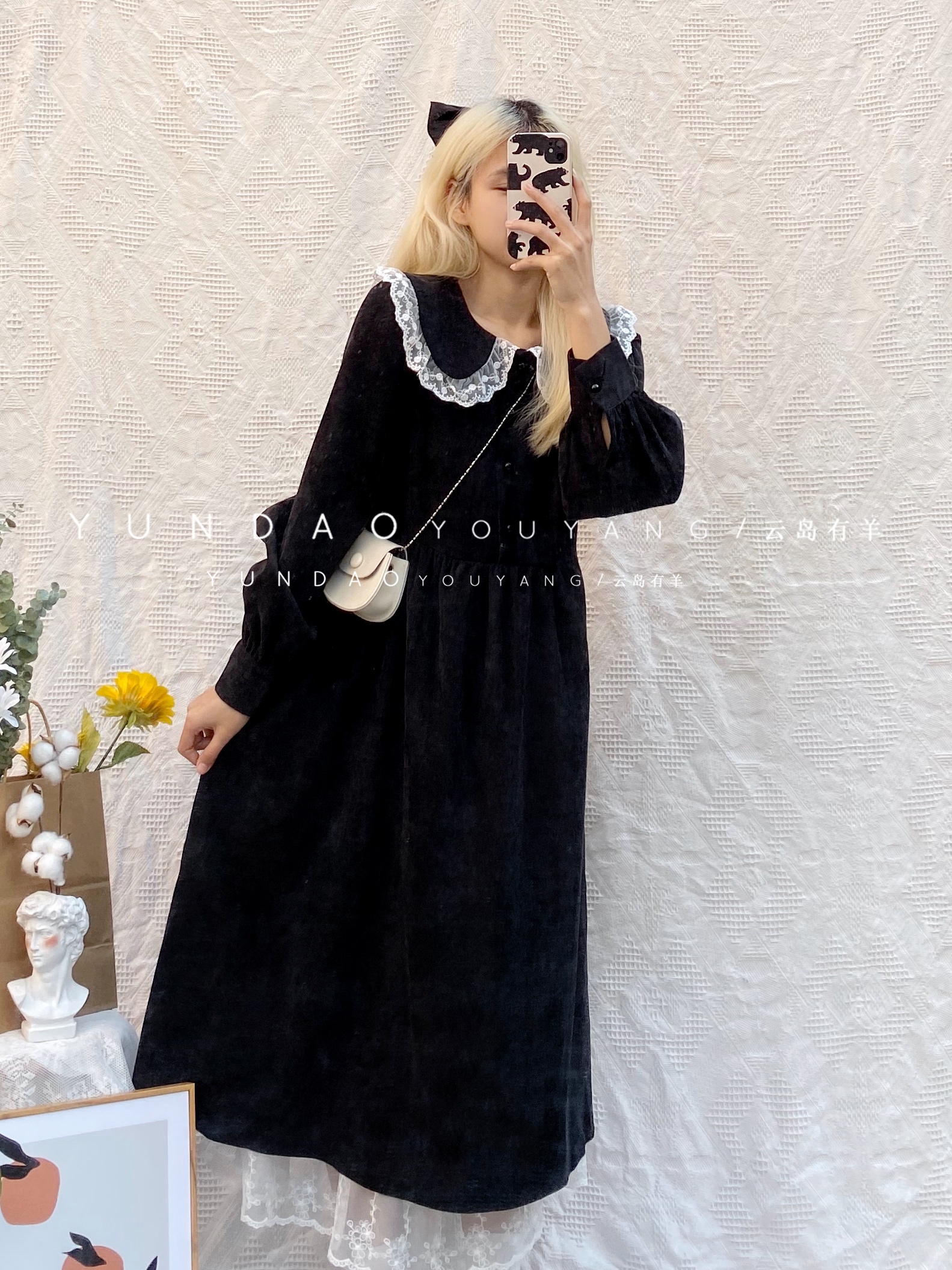 首页> 男装/ 女装/ 内衣> 女装> 蕾丝裙> 華黛 档口合作福利款 原版蕾丝拼接娃娃领珍珠扣长袖连衣裙女