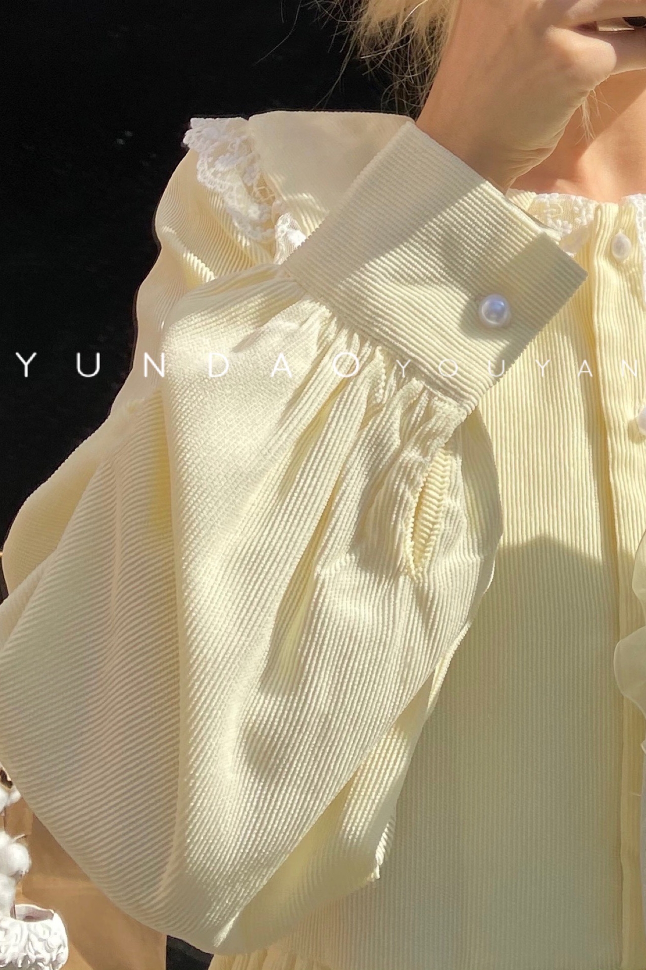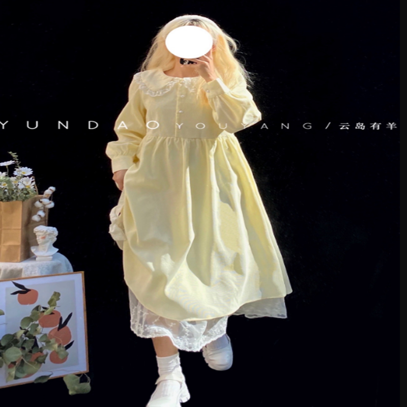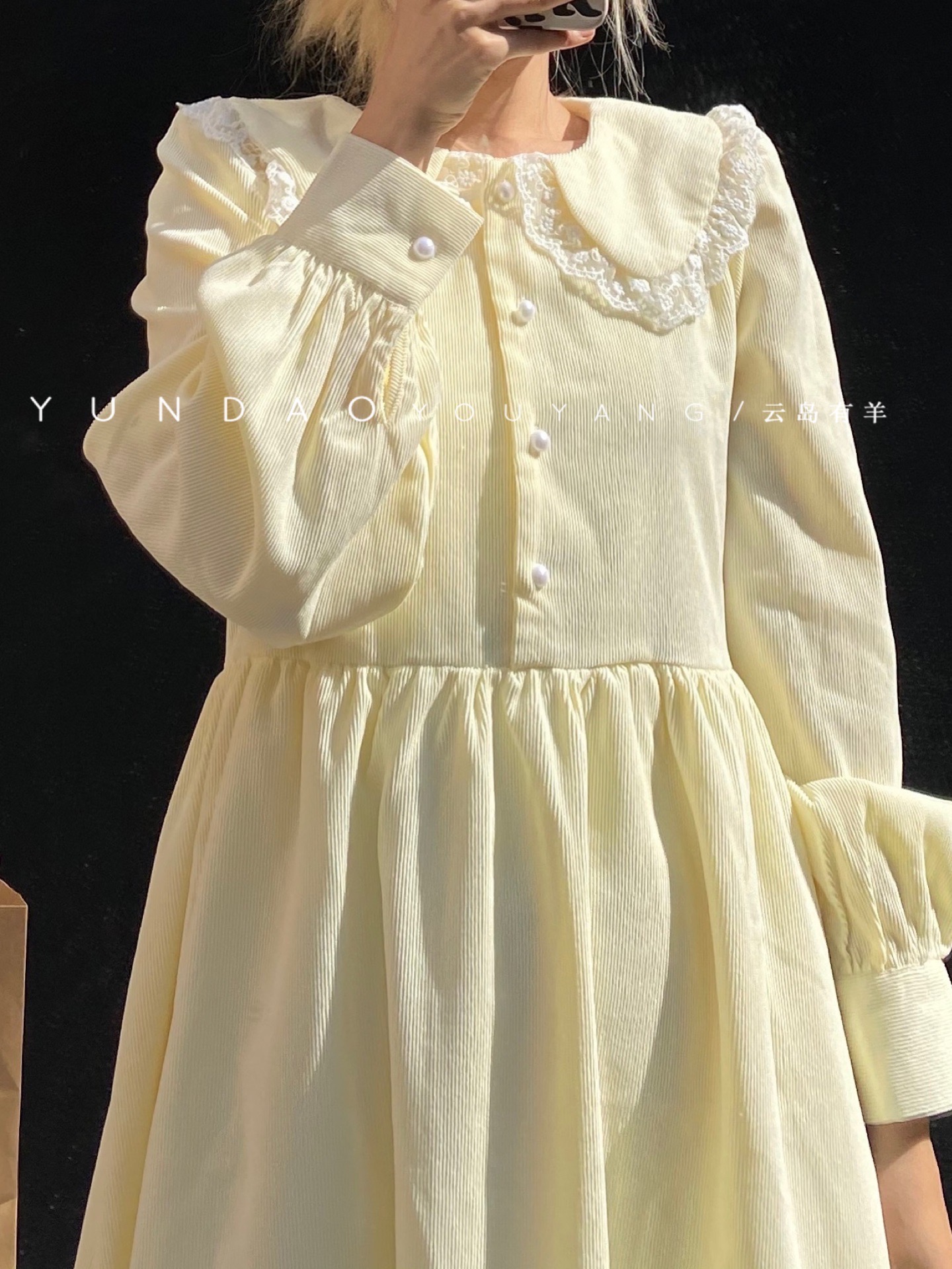 華黛 档口合作福利款 原版蕾丝拼接娃娃领珍珠扣长袖连衣裙女