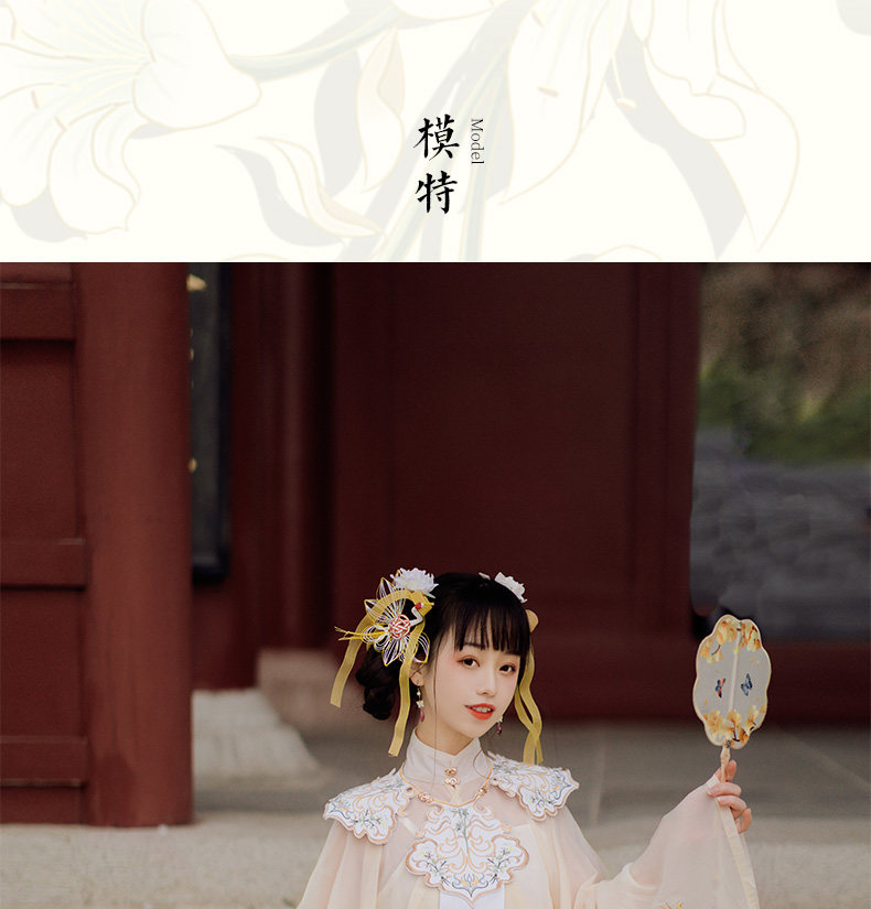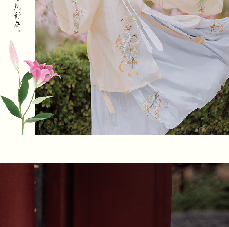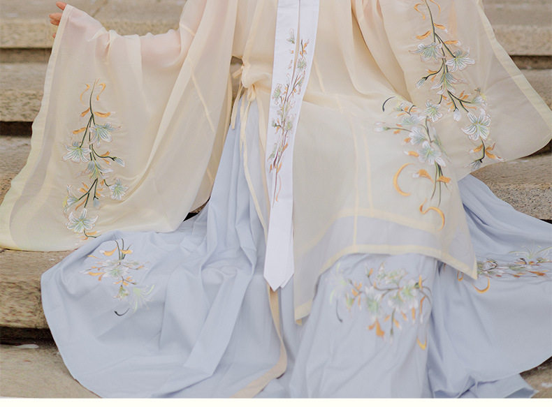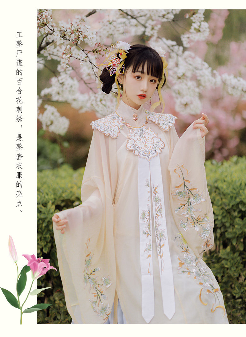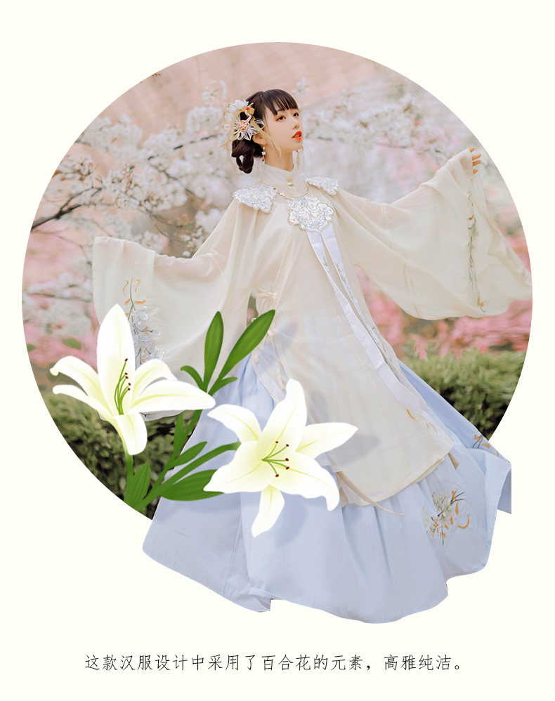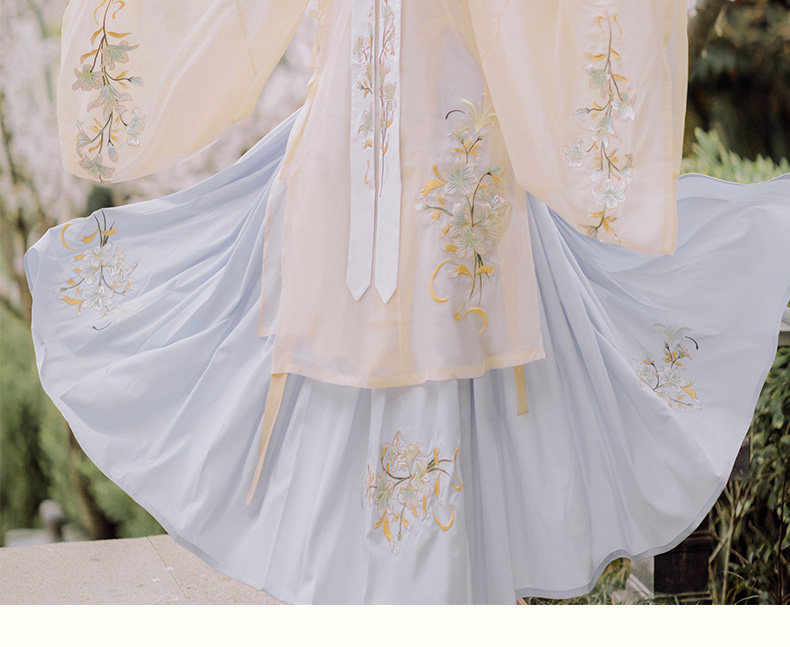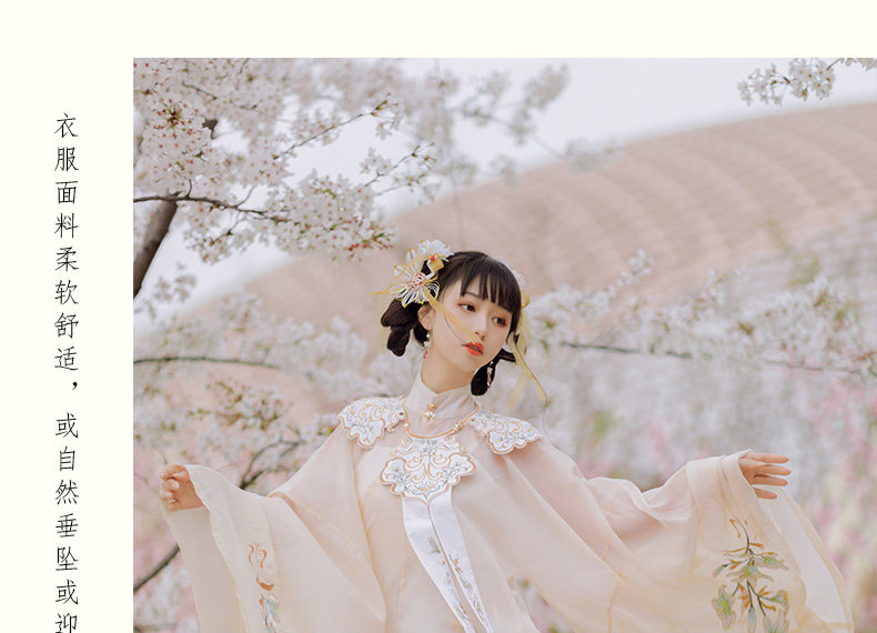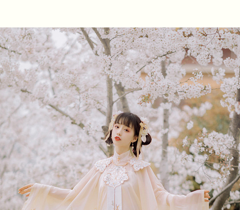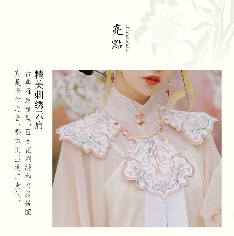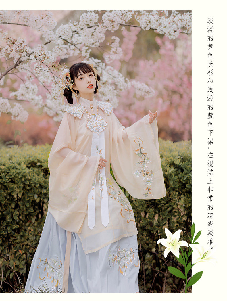 颜色分类: 杏色立领纱衫+浅蓝色绣花下裙 立领纱衫+绣花下裙+绣花云肩 立领纱衫+绣花下裙+云肩+吊带 立领纱衫+绣花下裙+云肩+中衣 限时晒图奖励10元红包
