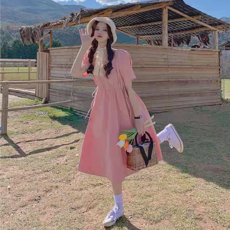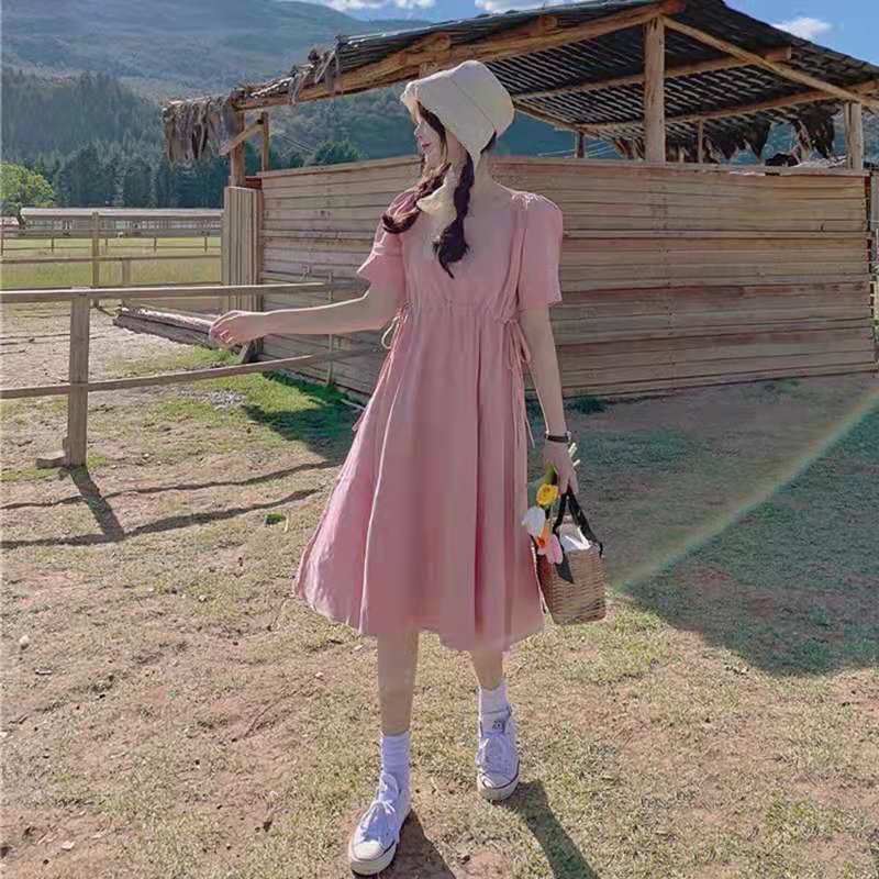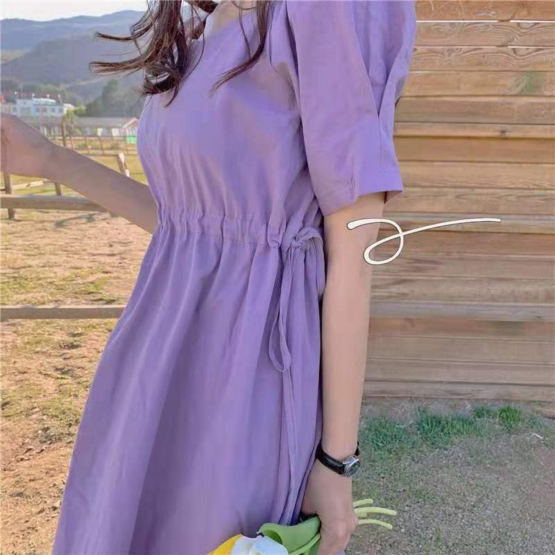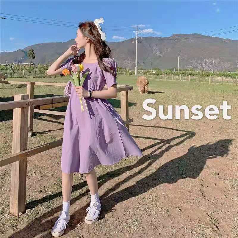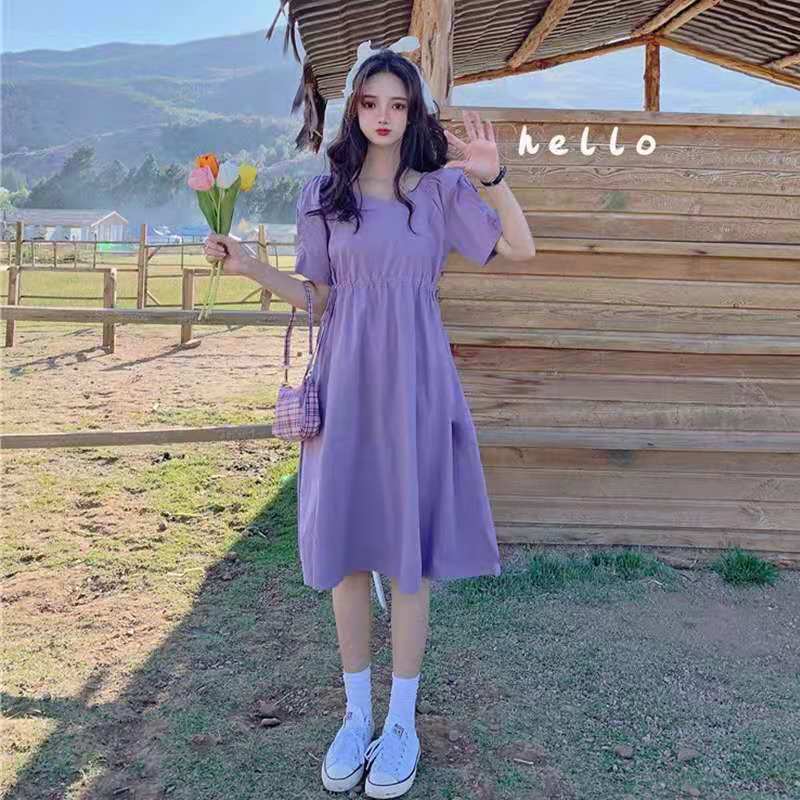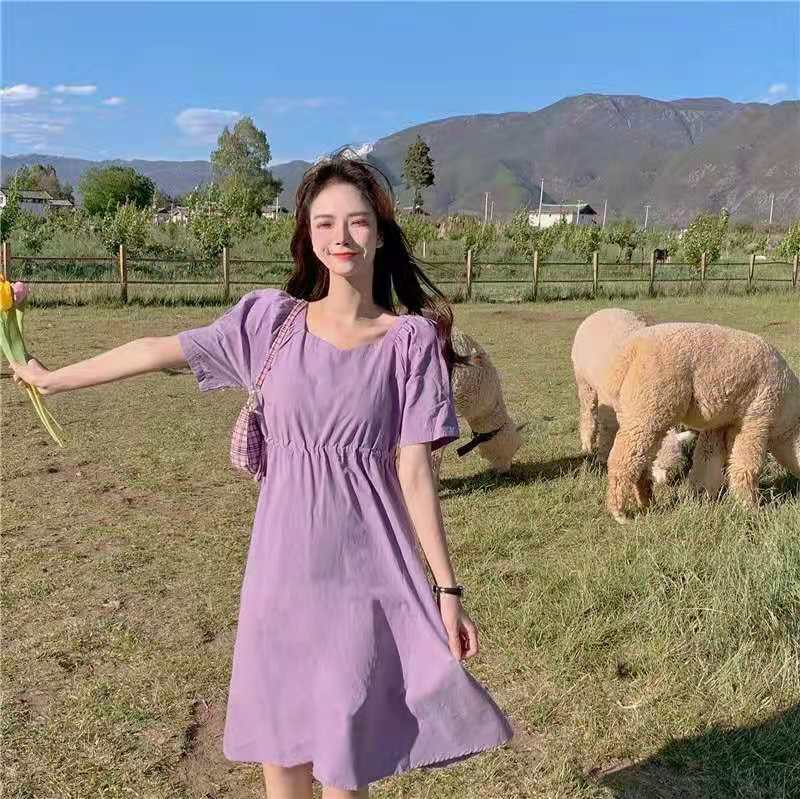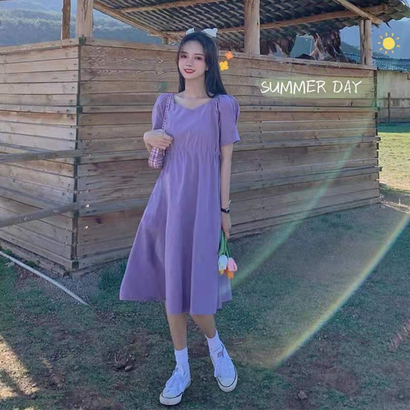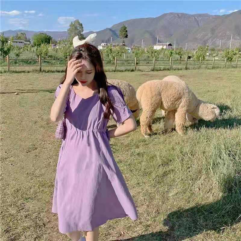 紫色连衣裙温柔风超仙女装2021新款夏季短袖v领法式初恋甜美裙子