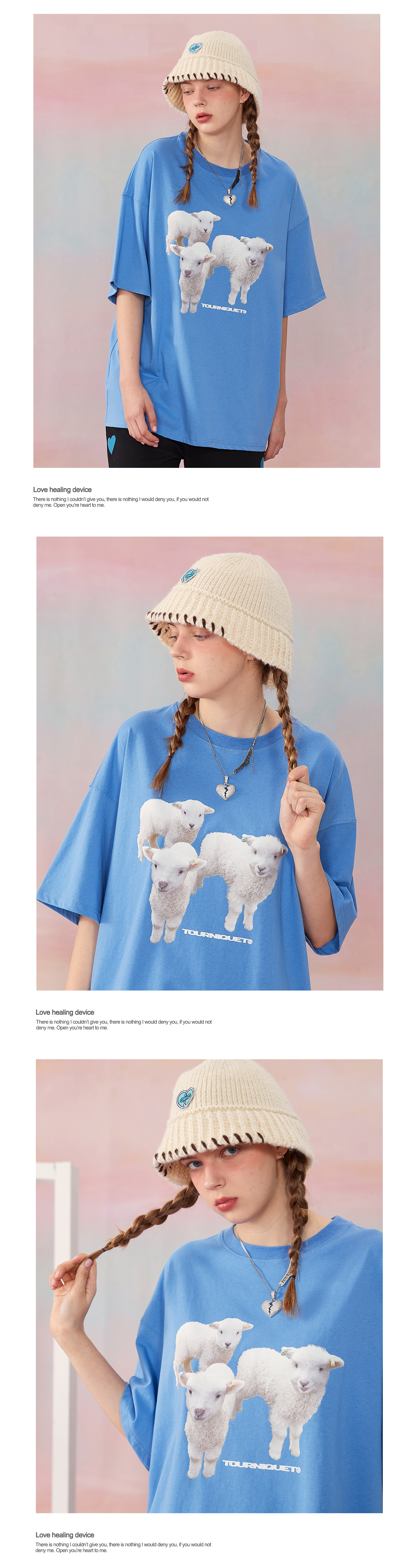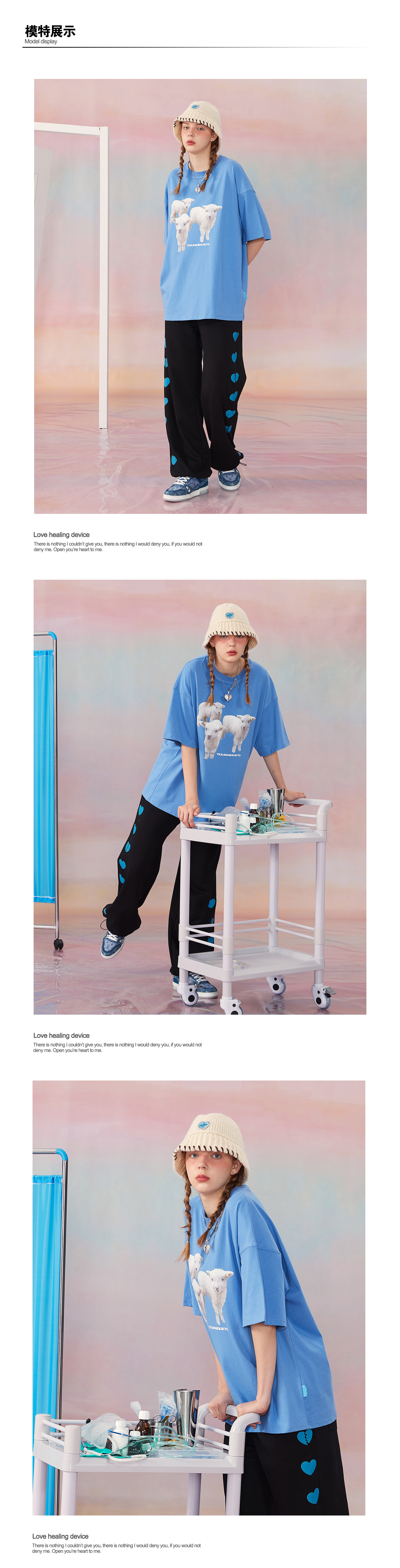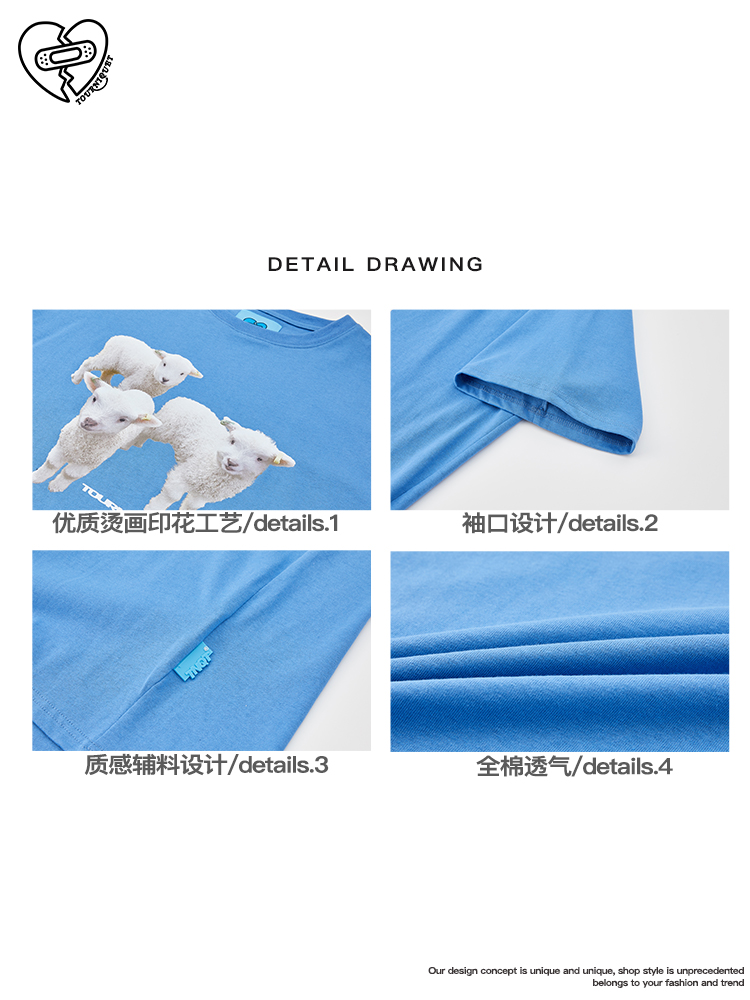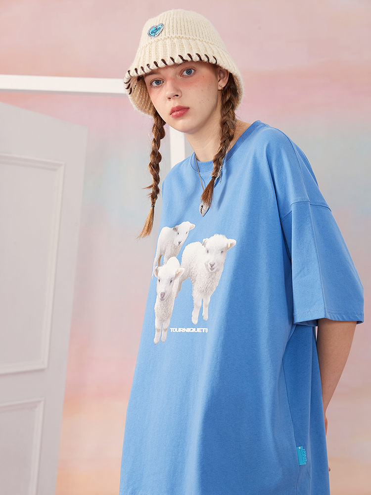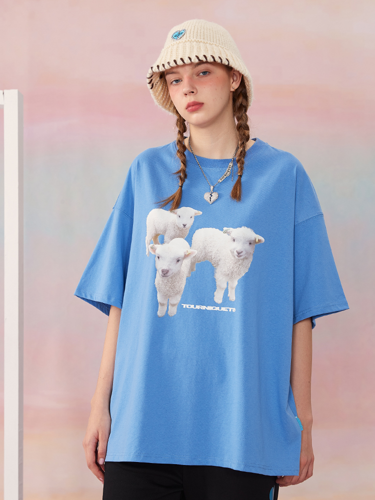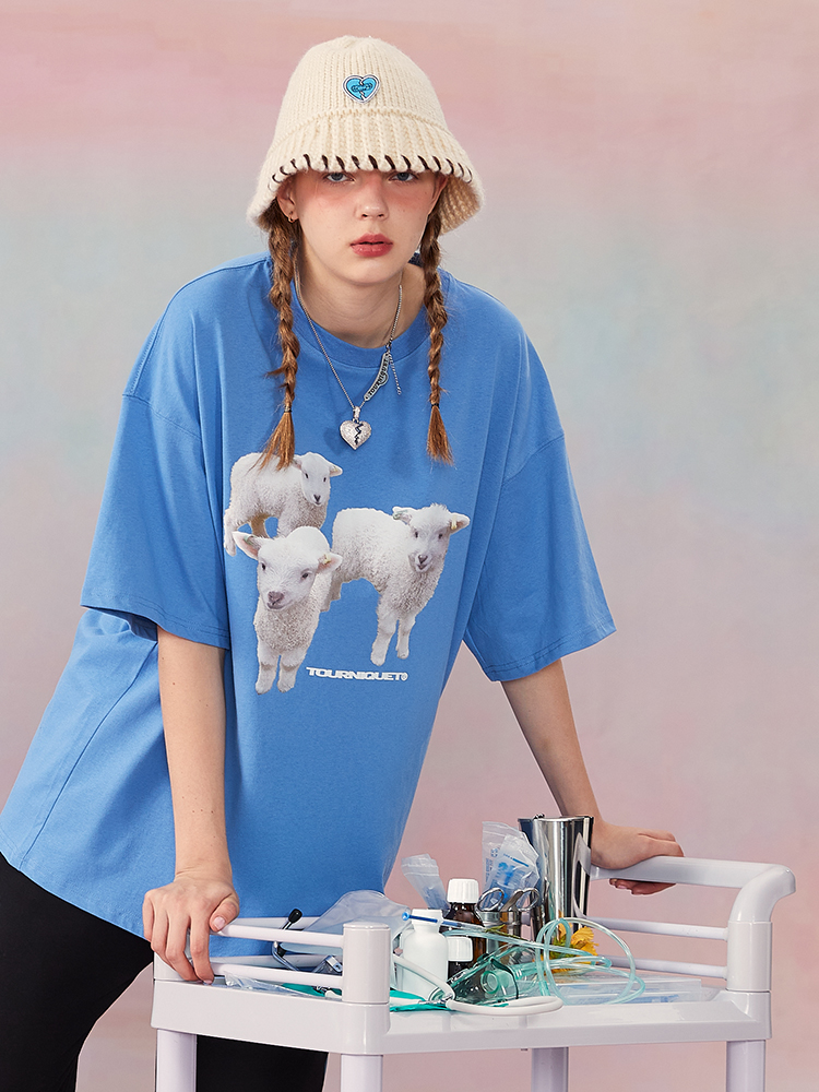 夏季新款ins三只小羊烫画印花休闲上衣短袖基础TEE情侣男女