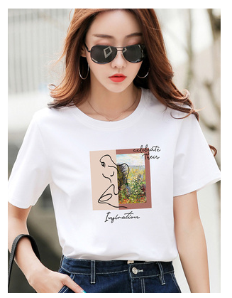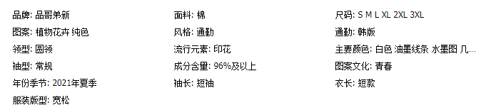 专柜品哥弟新款夏季印花体恤上衣2021宽松白色纯棉短袖t恤女短款