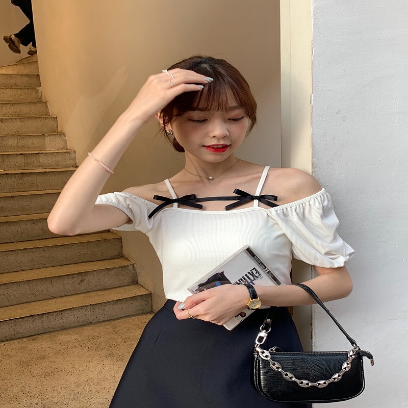 设计感小众上衣一字肩短袖纯欲t恤辣妹仙女短款女夏法式别致