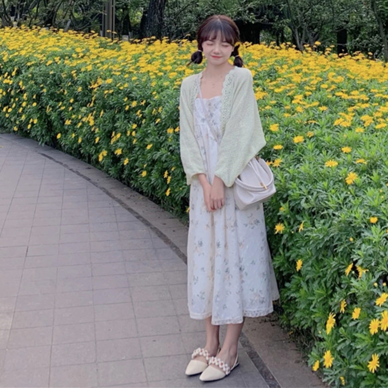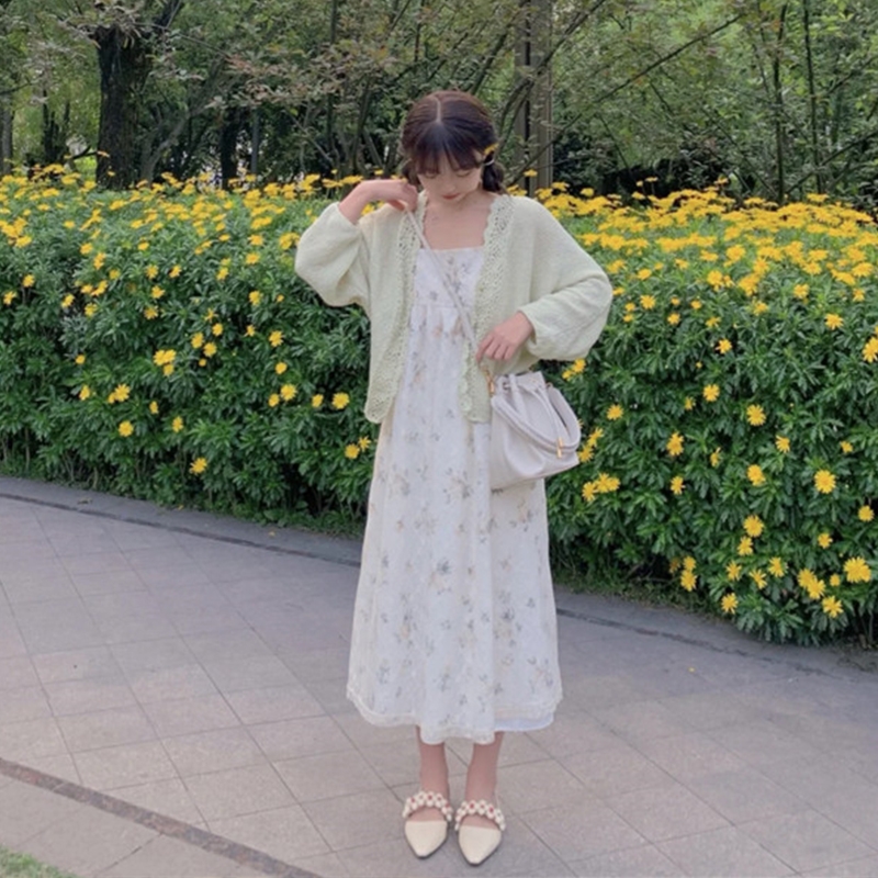夏季2021新款小清新森系碎花中长款显瘦减龄打底吊带连衣裙女裙子