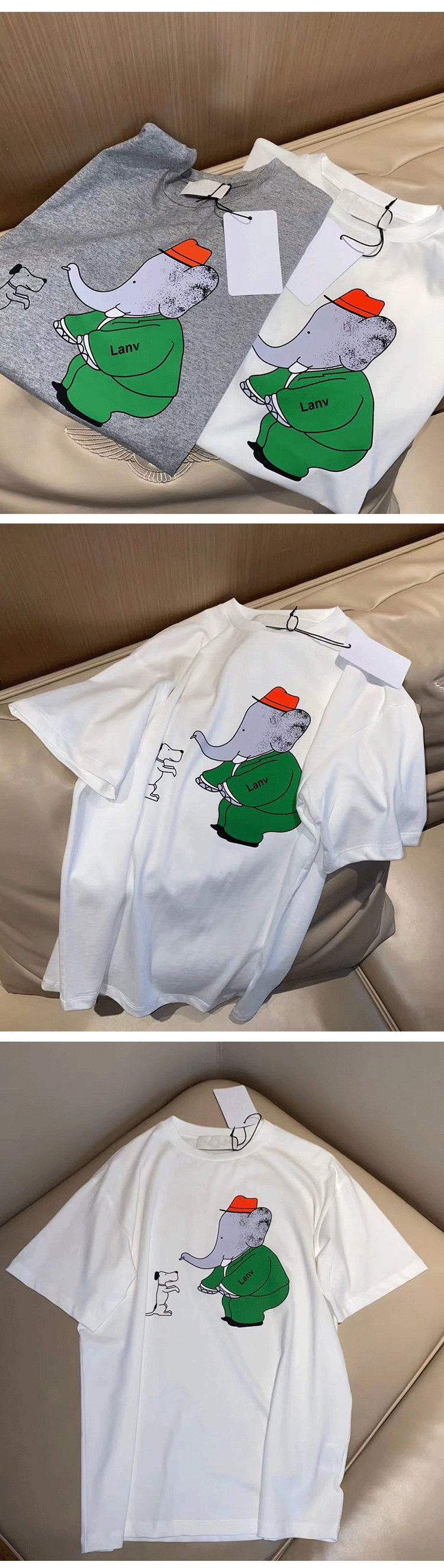 短袖2021年新款女t恤isn潮白色卡通大象图案印花宽松纯棉潮牌体恤