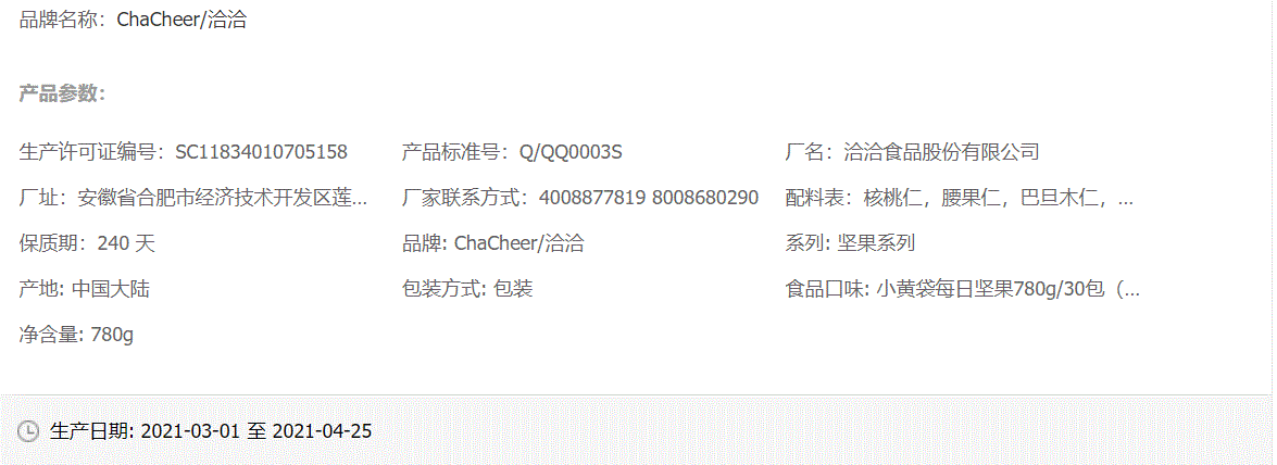 洽洽小黄袋每日坚果780g/30袋 恰恰孕妇营养混合干果零食网红礼盒