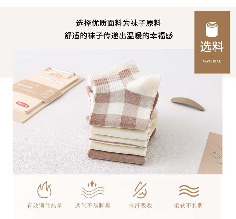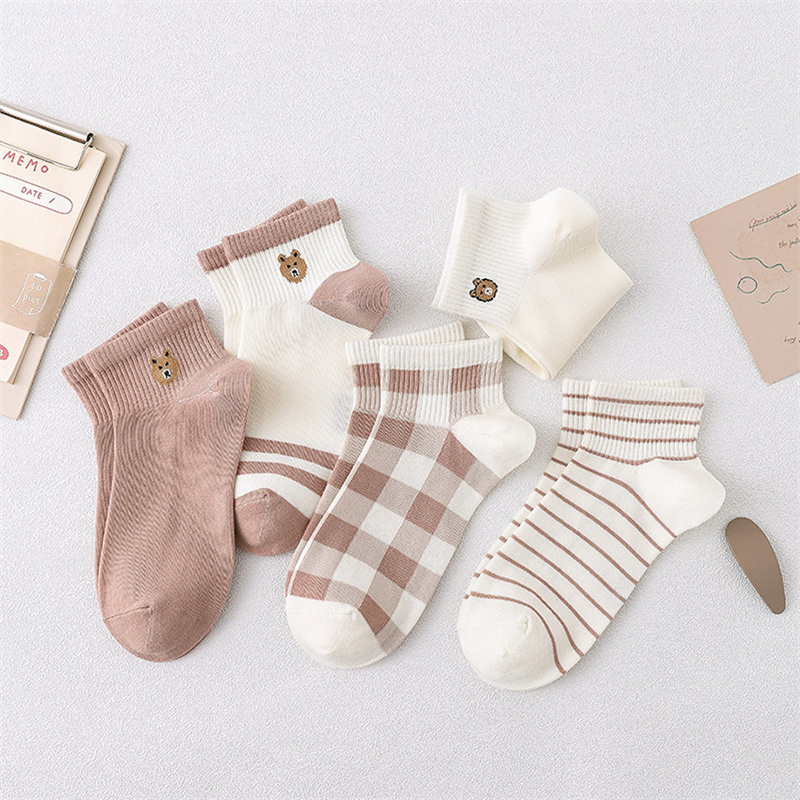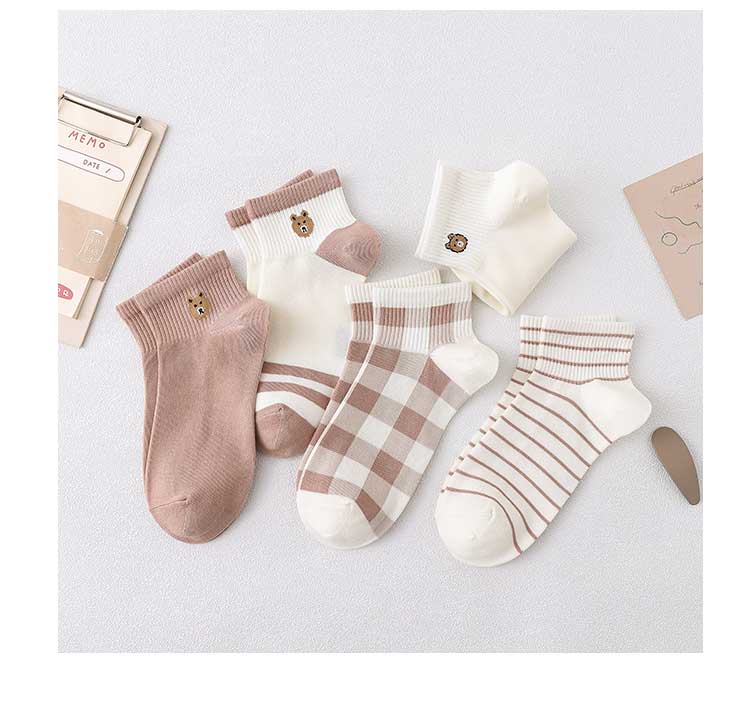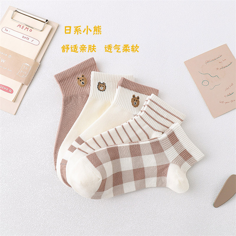 卡其色袜子女5双春夏季薄款棉短袜女士卡通船袜女可爱女袜短款潮